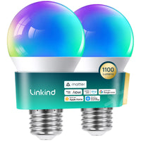 Linkind Matter Smart RGBTW Bulb,1100LM 75W Smart Light Bulbs, Work with Alexa/Apple Home/Google Home/SmartThings, LED Color Changing Bulbs Music Sync, 2.4GHz Wi-Fi Light Bulbs LED 11W, A19 E26, 2Pack