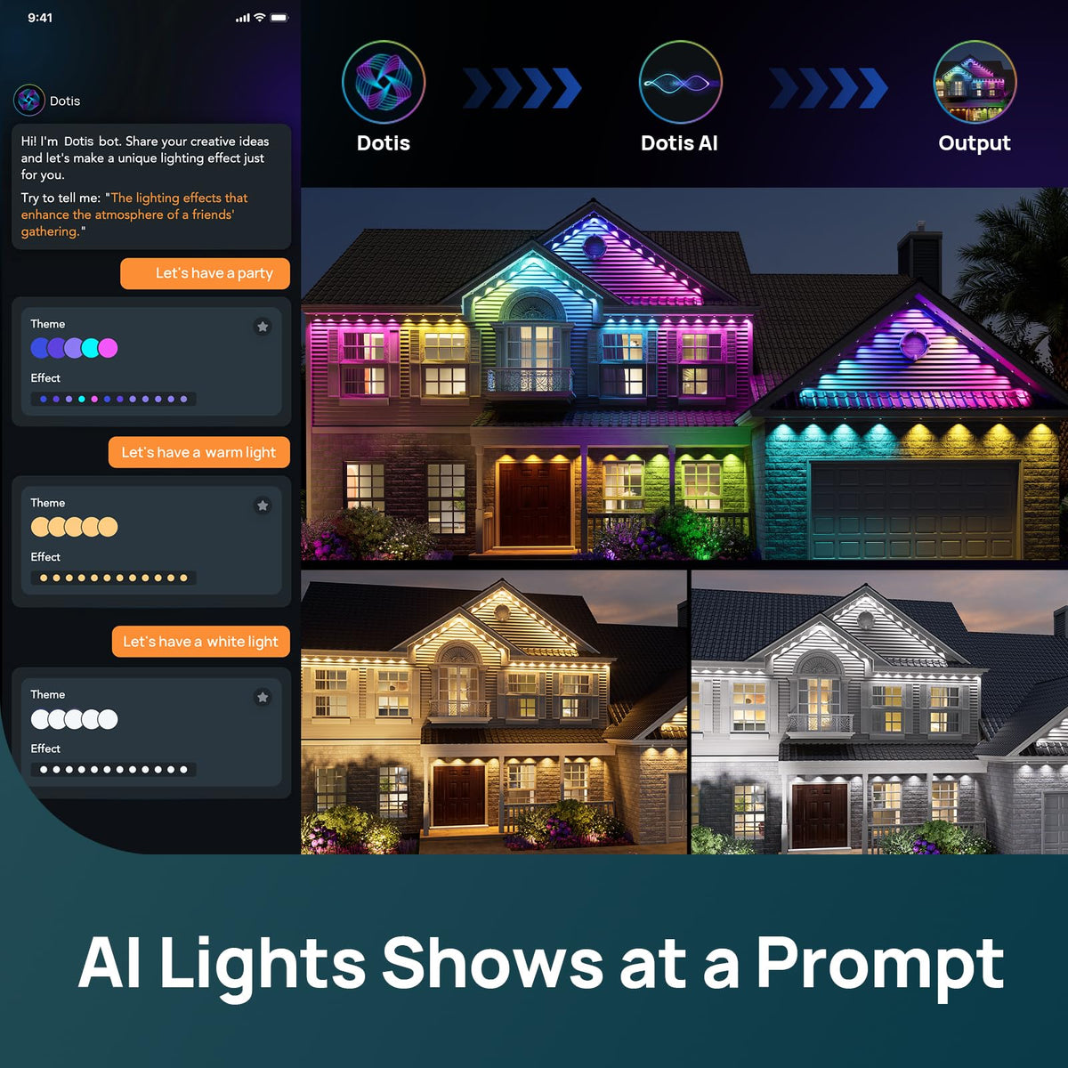 Linkind Permanent Outdoor Lights HP5,Smart AI RGBTW 150ft Christmas Lights, 85 Scenes Modes for Daily Holiday Christmas Decorati