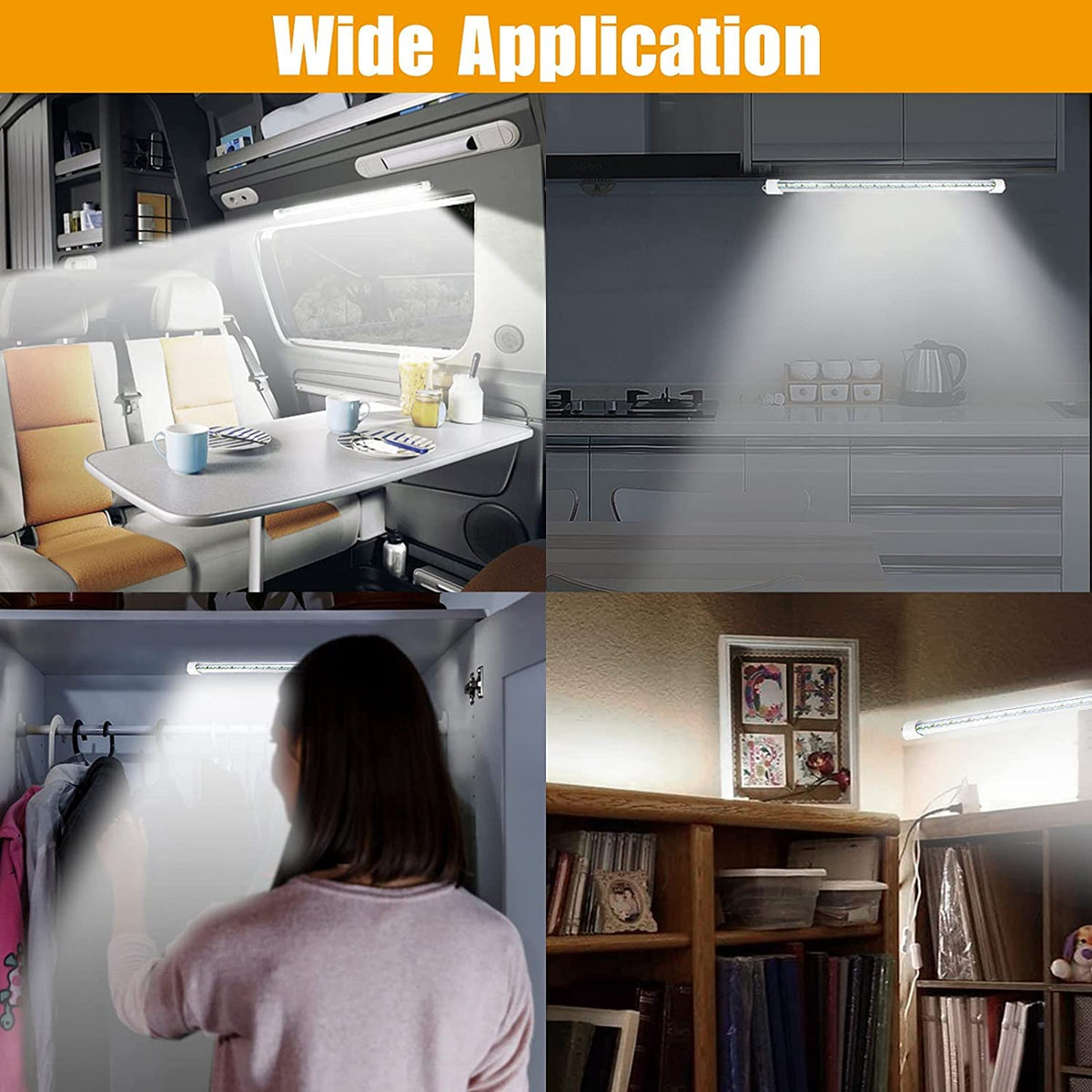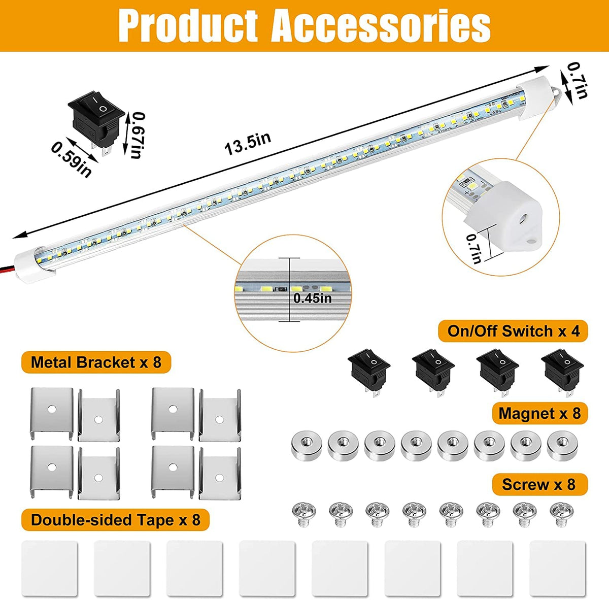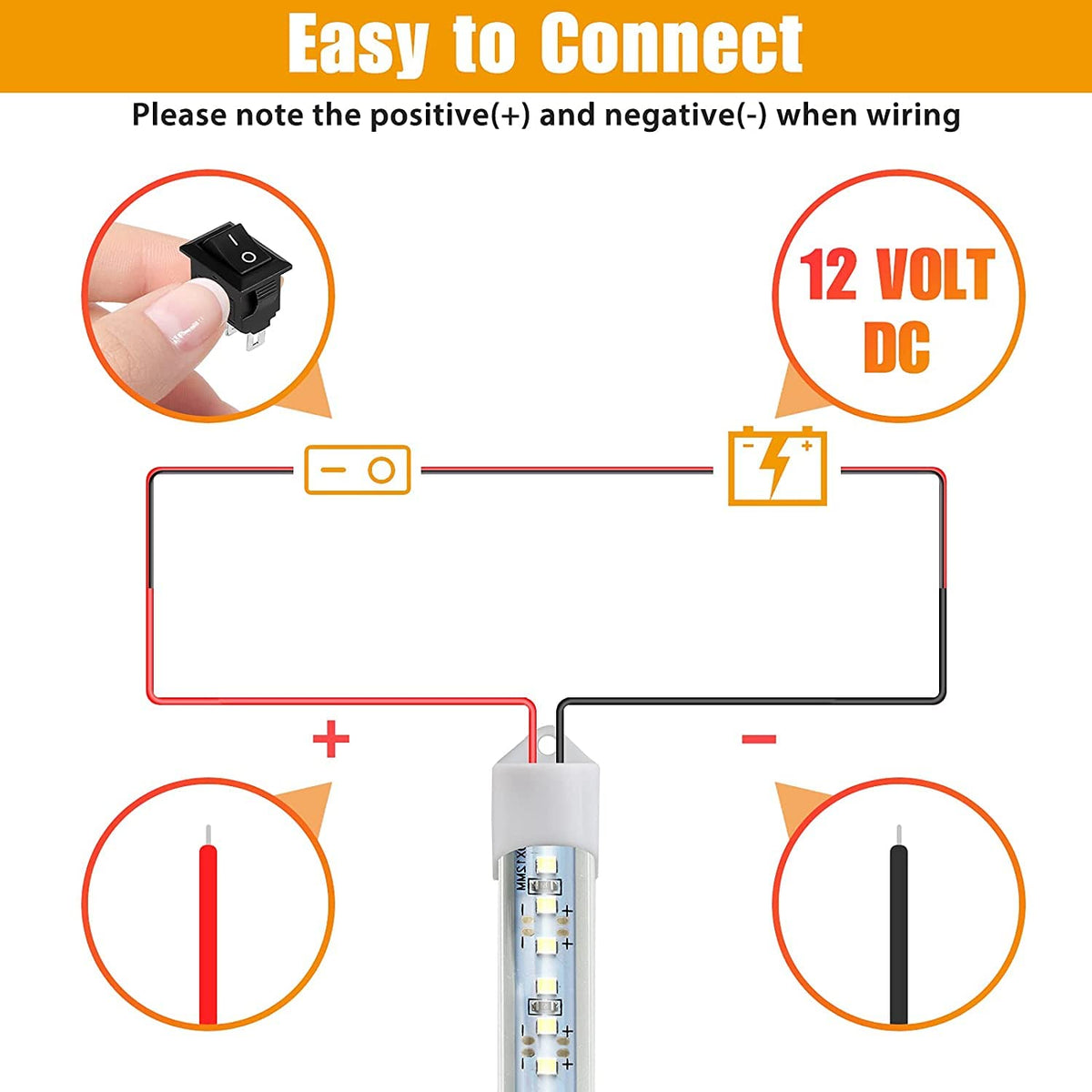 Linkstyle 12V 48 LEDs Interior Light Bar with DIY switch can be us car interior lights or work lights for car, van, RV, lorries, campers, motorhomes, and boats. And it also universal for cabinets, indoor, homes, offices, and more. User-friendly design makes installation easier and flexible to light up every corner. FEATURE Super Brightness: 12v Light fixtures come with 700LM 6500K white light and make cozy light experience. Simple Wire Connection: This interior light bar with two wires that black wire is negative and red wire is positive. Mount it with Screws, Tapes, or Magnetics. Wide Applications: Suitable for most types of RV, vans, trailers, campers, motorhomes, and marine boats, also be used in the living room, kitchen, office, etc. Slim Shape Design: Excellent size, portable and lightweight, allows you to install anywhere be shining even in tiny space. SPECIFICATION Power: 3W Voltage: DC 12V Lumen: 700 LM LED Quantity: 48 LEDs per Light Bar Temperature: 6500K Cool White Beam Angle: 160° Size: 13.5 x 0.87 x 0.5 in Package Include: 4 x Led Light Bar 8 x Double-sided Tape 8 x Magnet 8 x Screw 8 x Metal Bracket