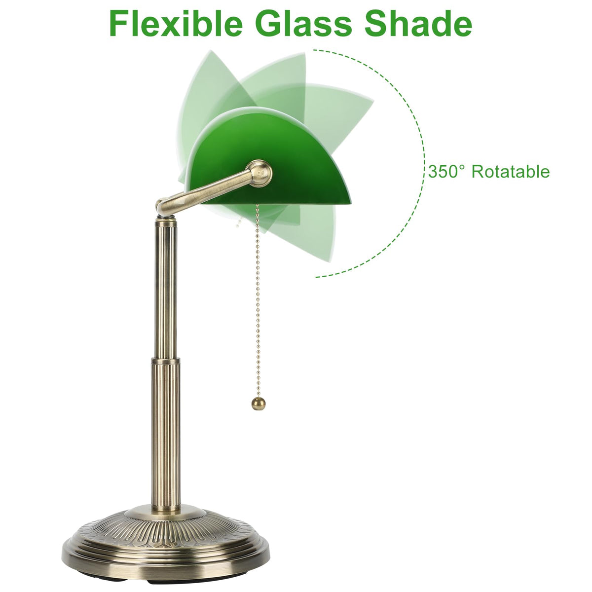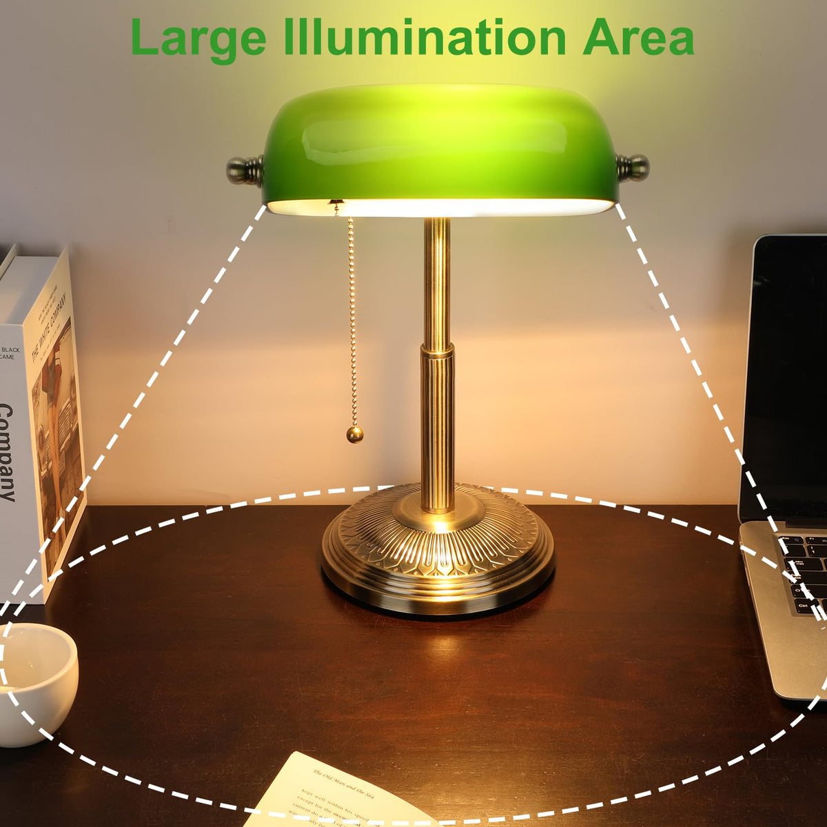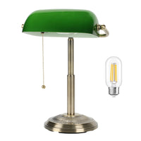 Linnmon Bankers Desk Lamp, Green Retro Lamp, Vintage Lamp With Pull Chain Switch For Home Office, Led Bulb Included (Brass+Green