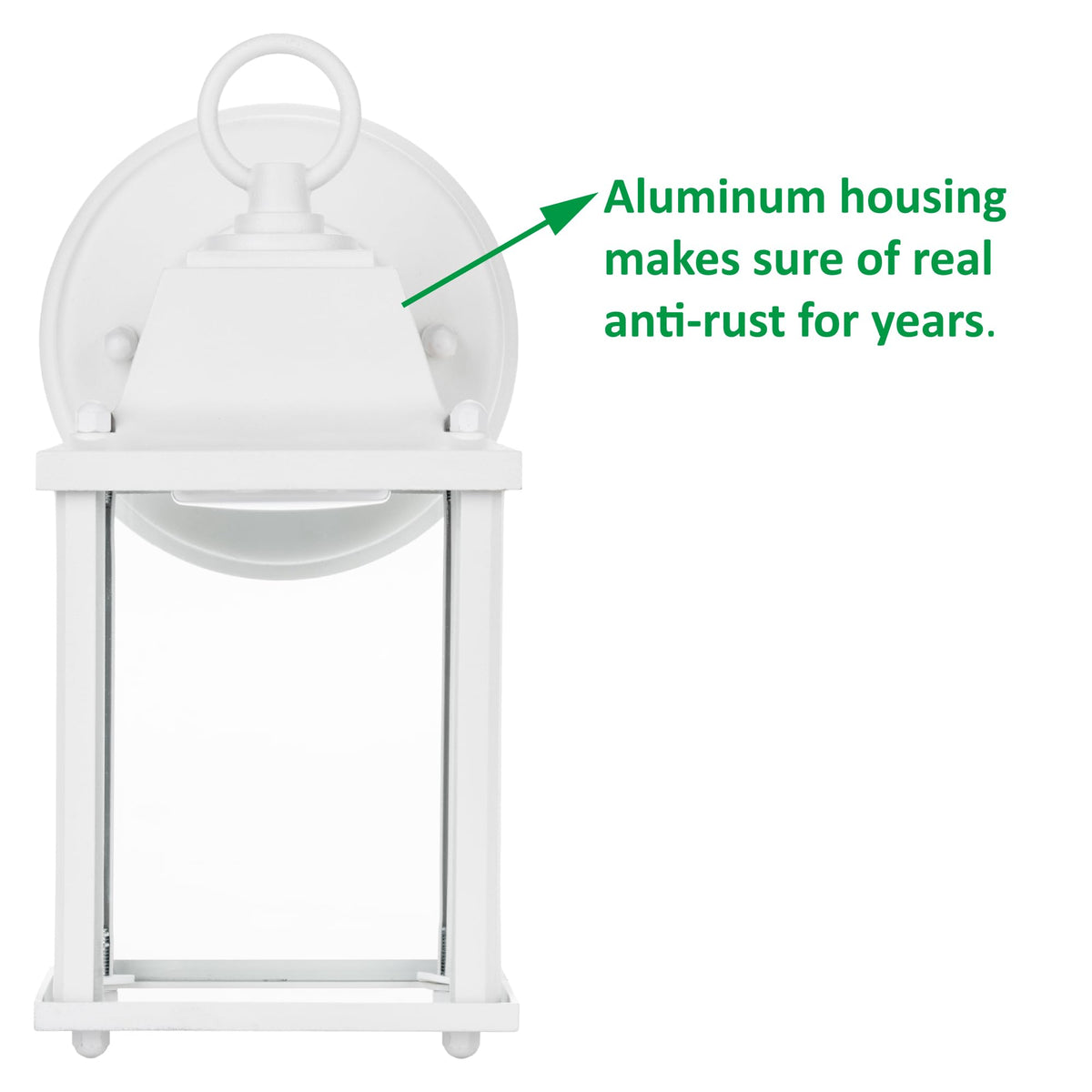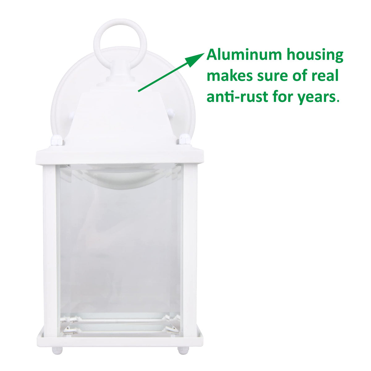 - **Premium Material Construction**: Crafted from die-cast aluminum housing and a glass frame, this wall lantern is not only stylish but also built to withstand the elements. Its erosion and rust-resistant properties make it a safe choice for wet locations.
