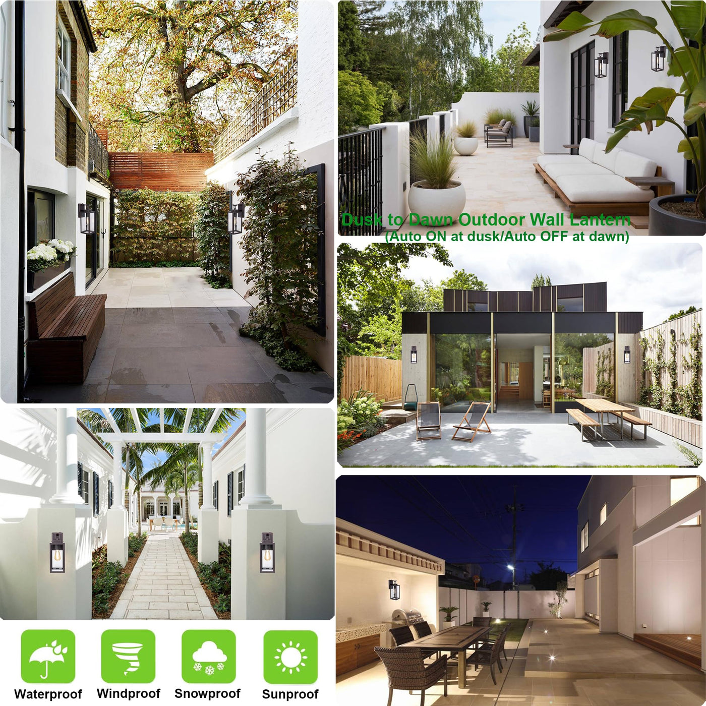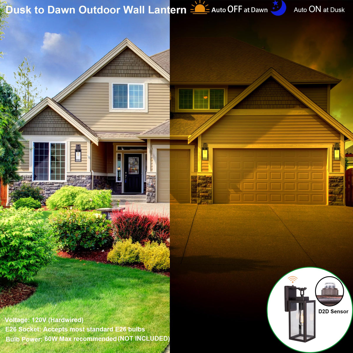 LIT-PaTH Dusk to Dawn Outdoor Wall Lantern, Wall Sconce as Porch Lighting Fixture, E26 Medium Base Max 60W, Anti-Rust Metal with