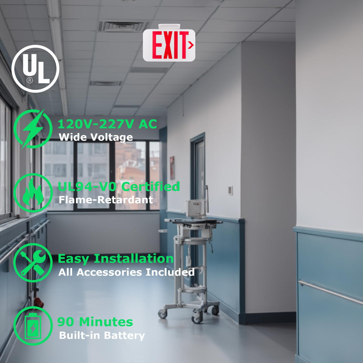 Q: Is the LIT-PaTH LED Exit Sign suitable for both residential and commercial use?A: Yes, the LIT-PaTH LED Exit Sign is designed for both residential and commercial use, compatible with a wide voltage range of 120-277V, making it a perfect choice for any setting.