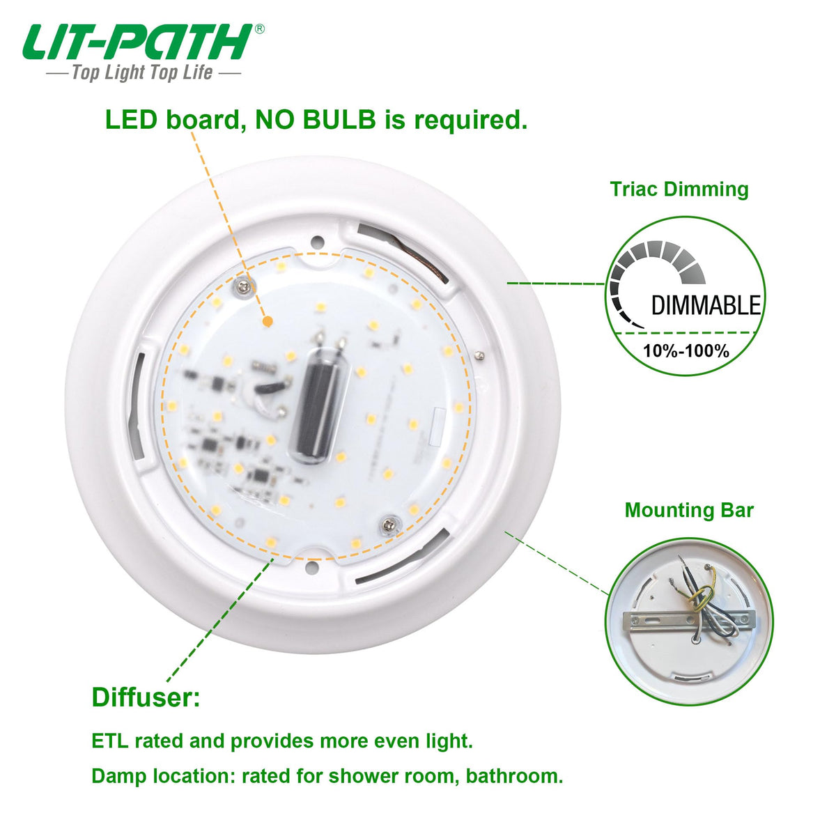 Q: Is the LIT-PaTH LED fixture dimmable?A: Yes, the LIT-PaTH LED Flush Mount Ceiling Lighting Fixture is dimmable, allowing you to adjust the brightness to suit your preferences and mood.