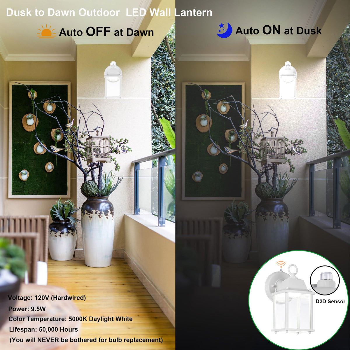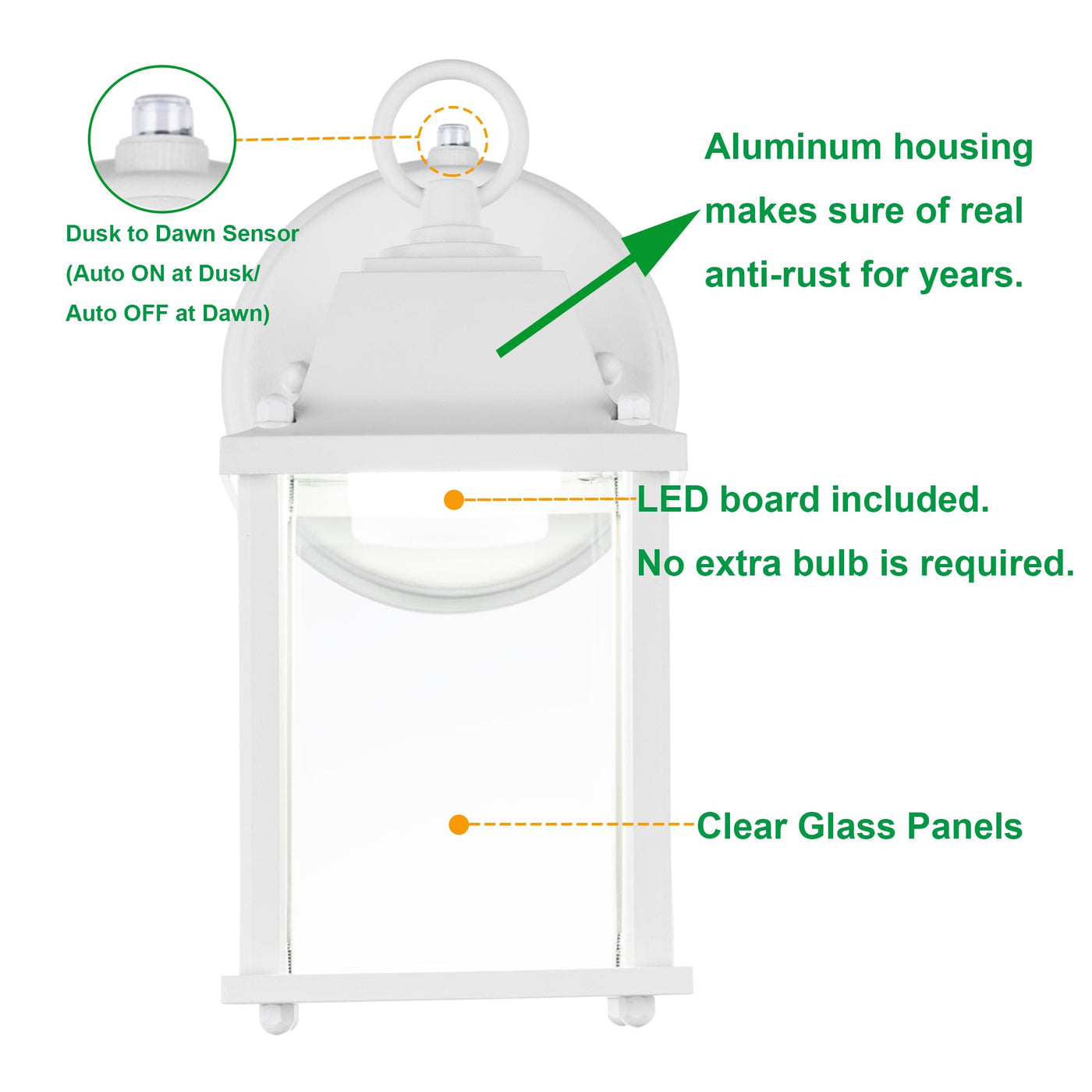 Lit-Path Outdoor Led Wall Lantern, 5000K Dusk To Dawn, 800 Lumen, Aluminum, 1
