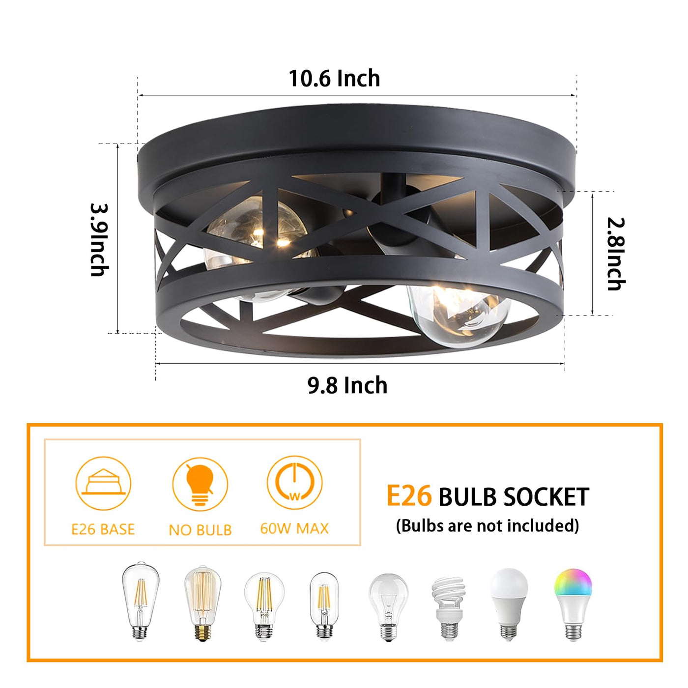 Q: What type of bulb is compatible with the Litaddscen ceiling light fixture?A: The Litaddscen ceiling light fixture is compatible with any max 60W E26 base bulb. For optimal performance, it is recommended to use dimmable LED bulbs if you want to take advantage of the dimming feature.