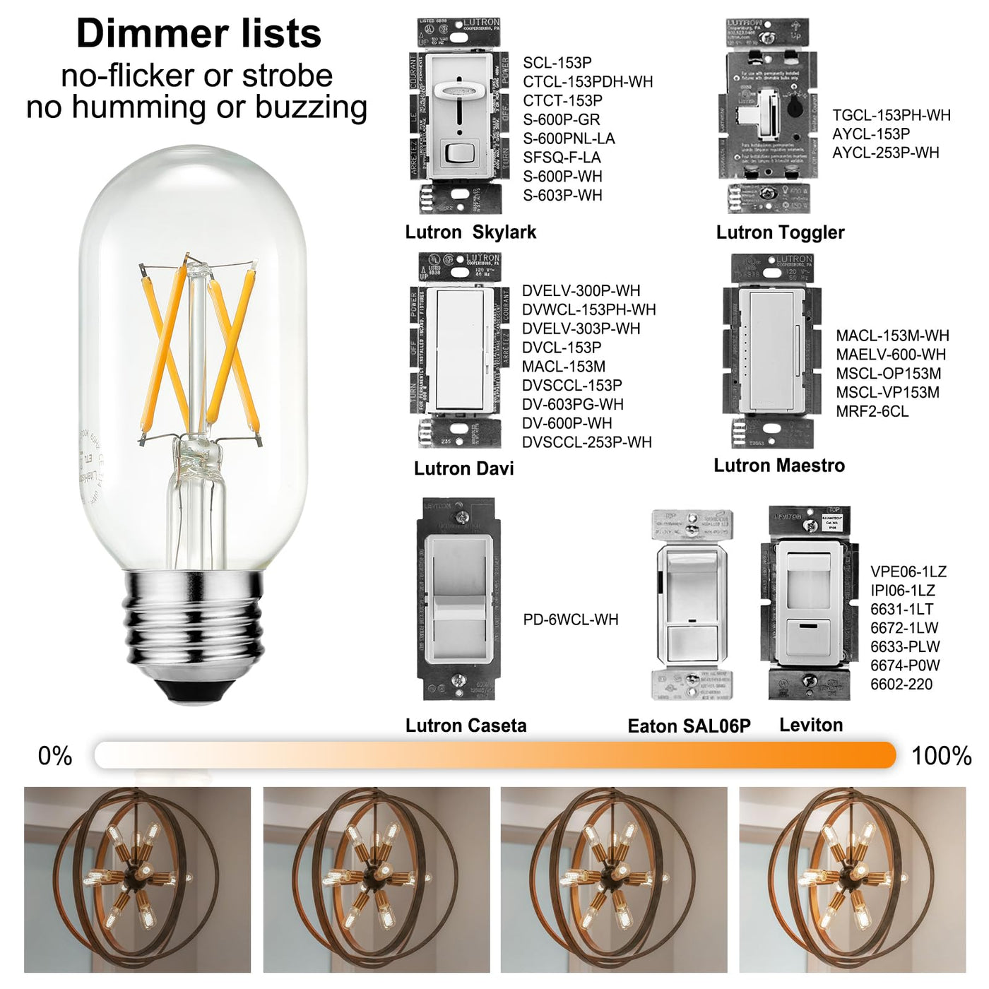 Q: Is the E26 LED bulb compatible with dimmer switches?A: Yes, the E26 LED bulb features smooth dimming from 0% to 100% and is tested compatible with 95% of Lutron, Leviton, and Eaton dimmers.