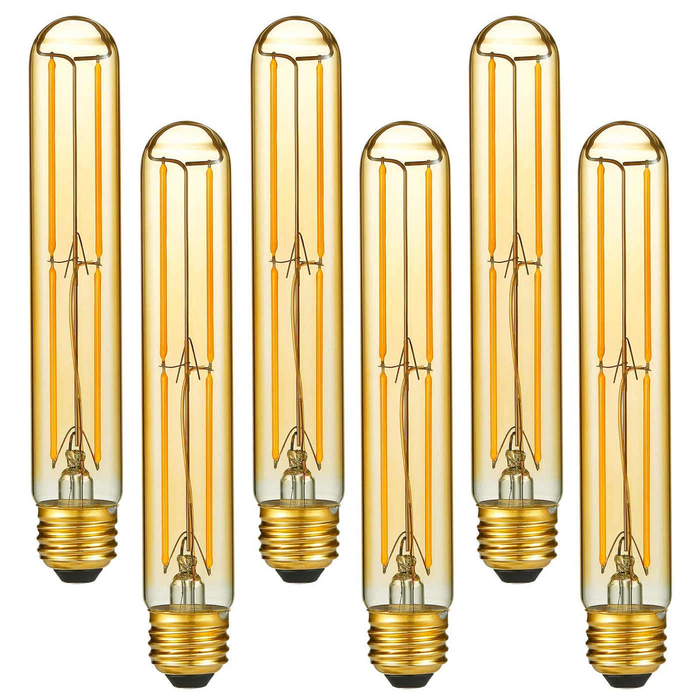 can you stand much heat when sitting under light fixture with incandescent light bulbs in summer Are you annoying or hurt by other brand flickerbuzzing and poor quality 60w light bulbs Are you eager to enjoy the benefits of led bulb without aesthetic loss Are you tired of getting the ladder out to replace the flicker,buzzing,bad dimmable compatible or burnt-out led bulbs in fixtures Do you regret for your last choice of the dull and short-lasting incandescent bulbs,edison light bulbs or other brand led light bulbs when remodeling your home lighting Time of LiteHistory Vintage E26 edison bulb now APPLIcATIONS for Edison bulb Extensively applied for rustic Pendant,ceiling,chandeliers,Vanity,cabinet,Sputnik,island,Industrial steampunk wall scones,water pipe wall lamp,Wall mounted lamp,decoration and indoor outdoor fixtures decoration Dimmer compatibility: Lutron: LUTRON:Lutron Skylark:ScL-153P,cTcL-153PDH-WH,cTcT-153P,S-600P-gR,S-600PNL-LA,SFSQ-F-LA,S-600P-WH,S-603P-WHLutron Toggler:TgcL-153PH-WH,AYcL-153P,AYcL-253P-WHLutron Davi:DVELV-300P-WH,DVWcL-153PH-WH,DVELV-303P-WH,DVcL-153P,MAcL-153M,DVSccL-153P,DV-603Pg-WH,DV-600P-WH,DVSccL-253P-WHLutron Maestro:MAcL-153M-WH,MAELV-600-WH,MScL-OP153M,MScL-VP153M,MRF2-6cLLutron caseta:PD-6WcL-WH Leviton: VPE06-1LZ ,IPI06-1LZ,6631-1LT,6672-1LW,6633-PLW,6674-P0W,6602-220 Questions for T10 led bulb: 1HowAs the dimmable function ItAs smooth dimmable 0-100% for 95% Lutron and Leviton dimmers 2Is this e26 led bulb 60 watt have high heat and dark side when lighting on NO,ItAs low heat due to epistar chip,brand led and charged Helium for dissipation 3How many watts equal to old E26 light bulbs 6W led bulb equal to 60 Watt light bulb