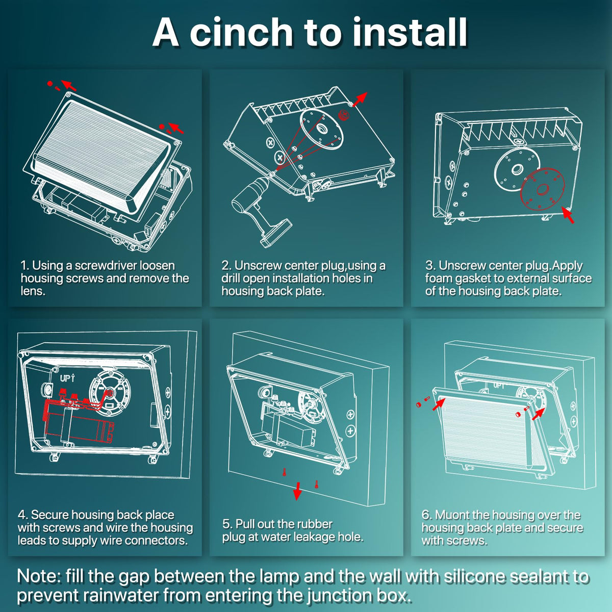 Q: Can I install the Litezone LED Wall Pack Light by myself?A: Yes, the Litezone LED Wall Pack Light features a detachable hinge design that simplifies installation, allowing one person to complete the setup. It is compatible with traditional installation methods, making it user-friendly for DIY enthusiasts.