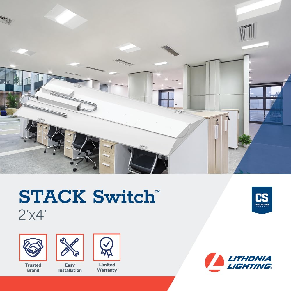 Lithonia Lighting 2 Ft. X 4 Ft. Stack Switch Led Lay-In Ceiling Light Fixture, 4000-6000 Adjustable Lumens, 3500K-5000K Switchab