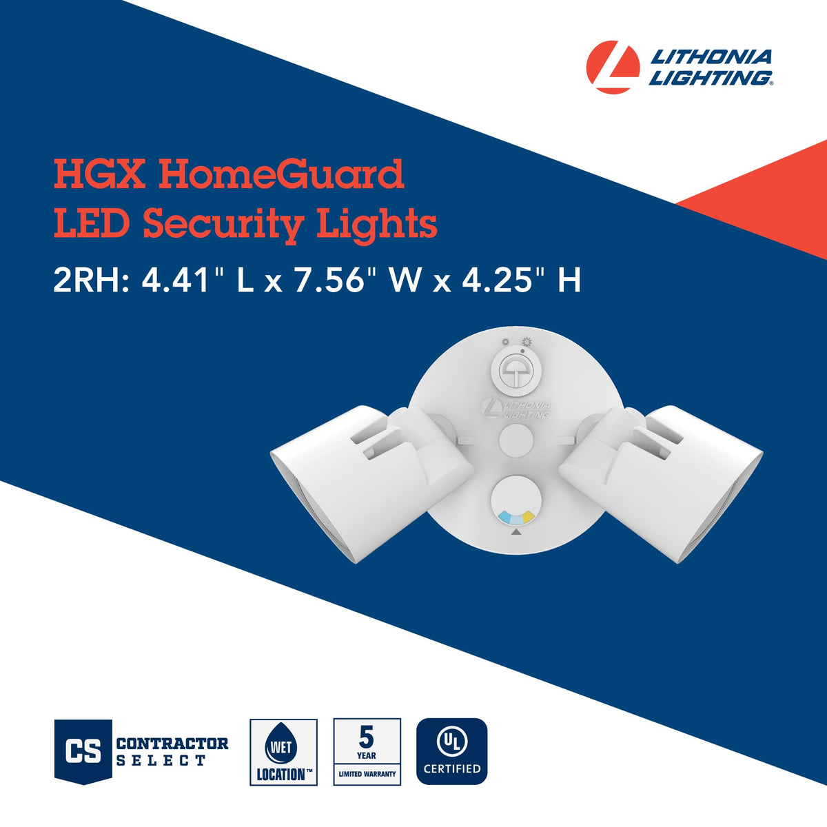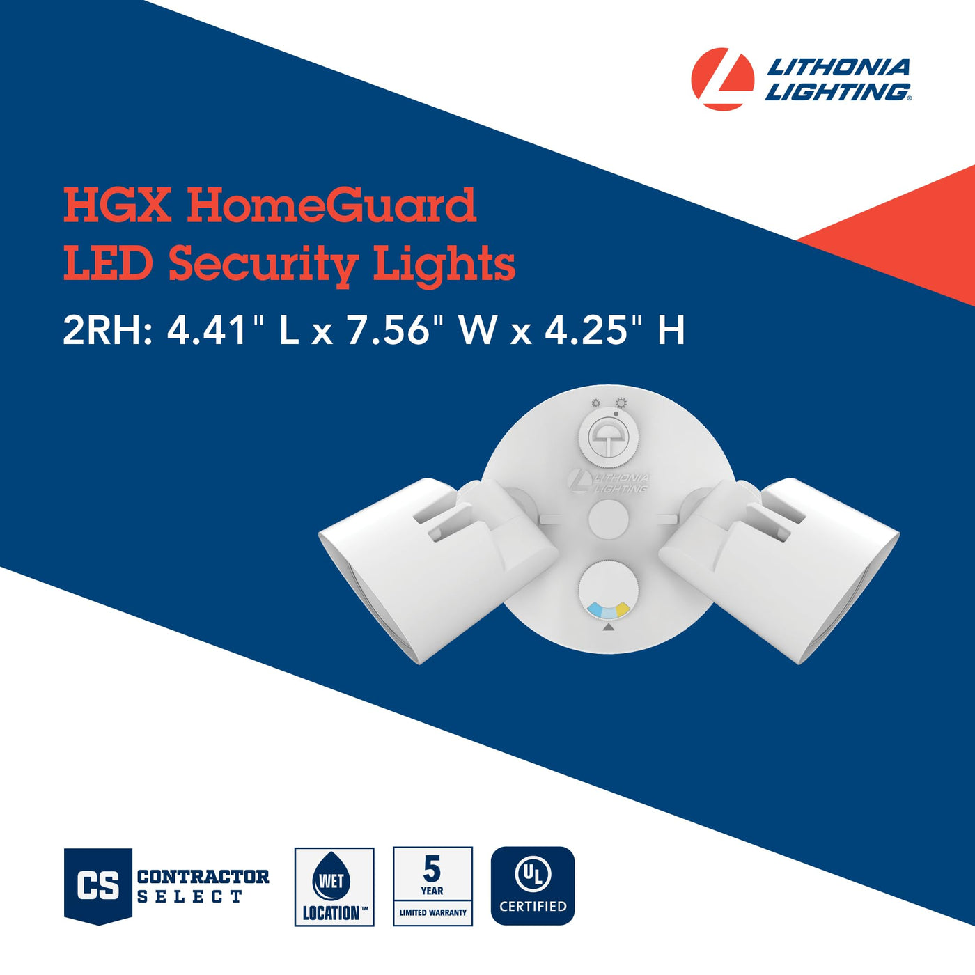 Available in a sleek white finish, the HomeGuard LED security lights (Model: HGX LED 2RH ALO SWW2 120 PE WH M2) not only enhance the safety and aesthetics of your property but also contribute to sustainable energy practices. Trust Lithonia Lighting, a brand synonymous with quality and innovation, to provide a comprehensive lighting solution for your home or business. Elevate your security lighting today with HomeGuard LED.