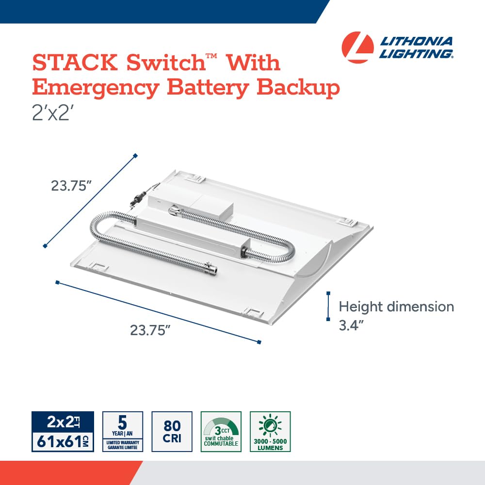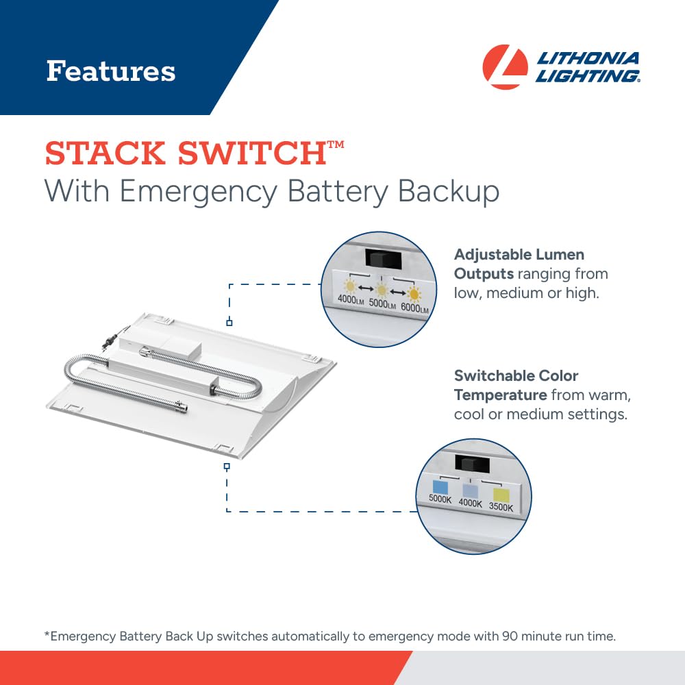 Lithonia Lighting 2X2 Led Troffer Light Stack Switch Led Lay-In Ceiling Light Fixture Adjustable Lumens 3500K/4000K/5000K Switchable Color Temperature Includes Emergency Battery Backup White