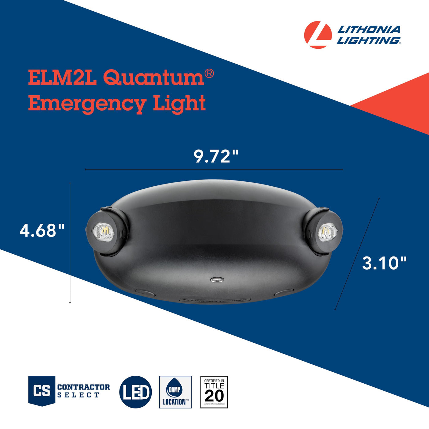 Lithonia Lighting Elm2L B M12 Quantum Led Emergency Light, Manual Testing, 220 Lumens, Black