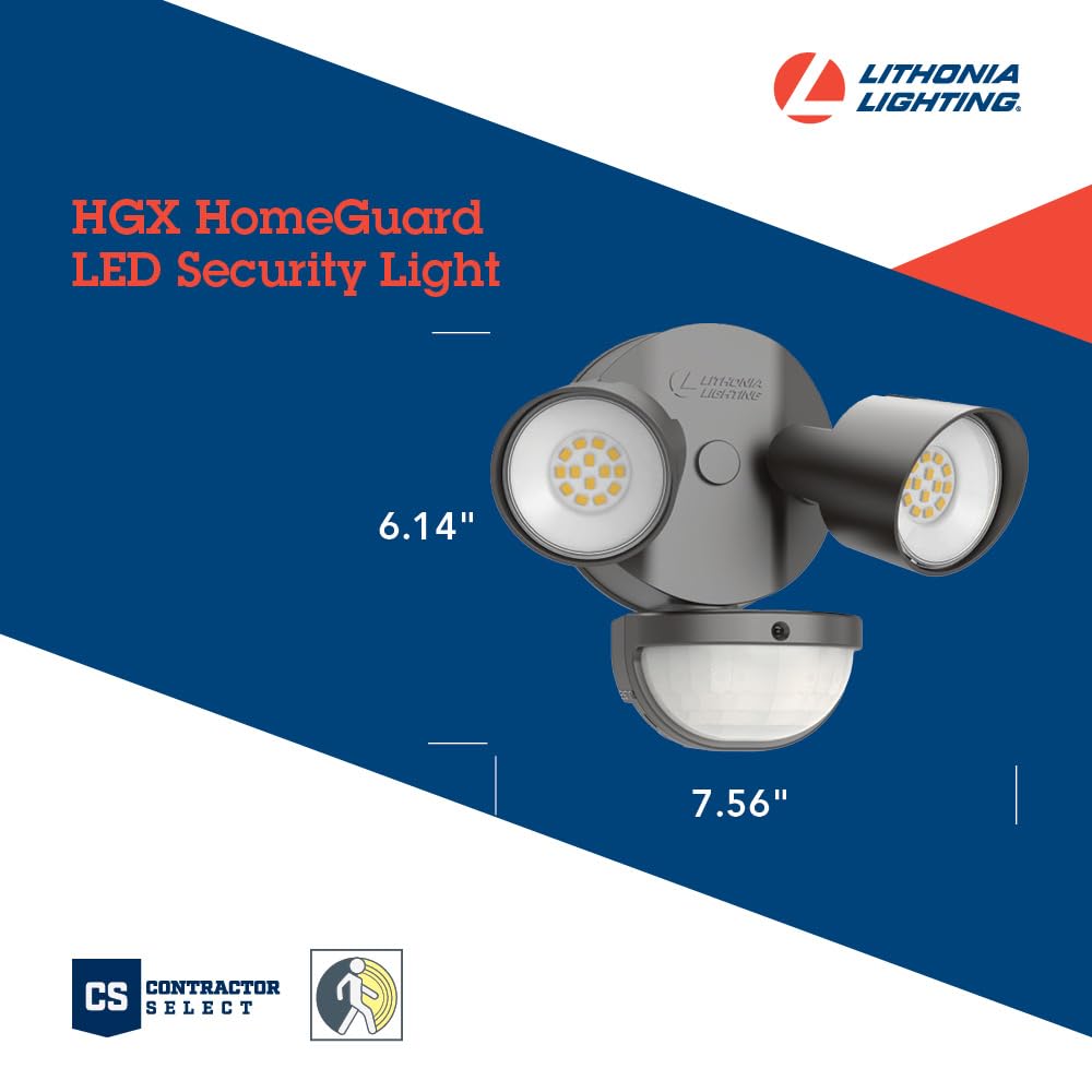 Lithonia Lighting Hgx Led 2Rh 40K 120 Mo Ddb M2 Homeguard Security Flood Lights, 4000 Lumens, 2-Light, Photocell Sensor And Moti