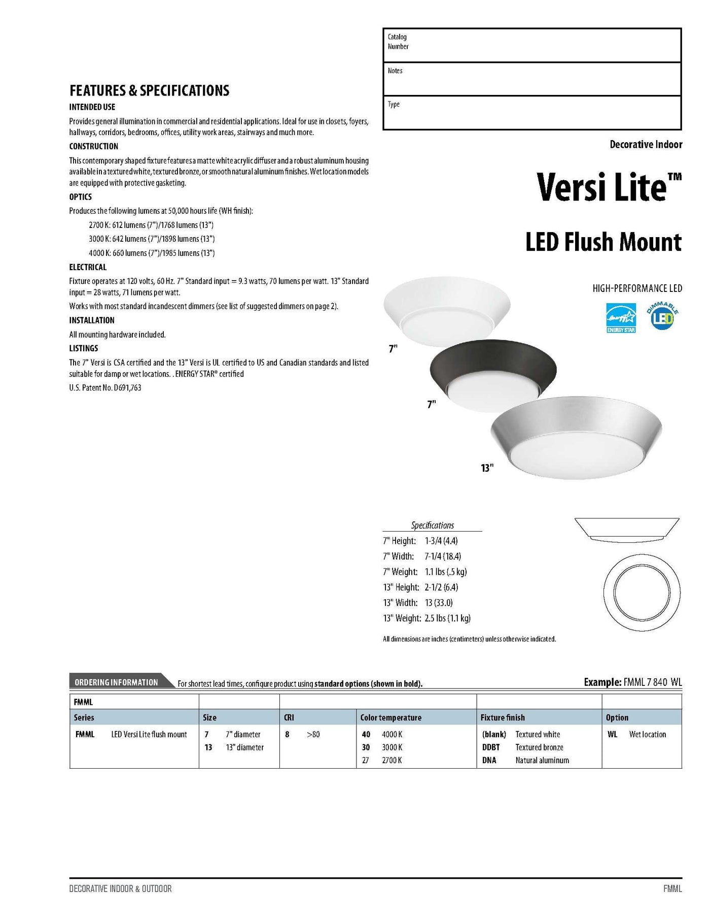The Lithonia Lighting 13 inch Versi round flush mount LED Light is designed to provide efficient general lighting suitable for both wall and ceiling installations. This versatile fixture combines modern aesthetics with energy-saving technology, making it an ideal choice for various indoor spaces.