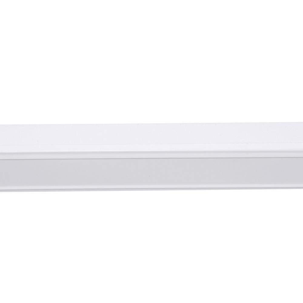 This four-foot hard wire fixture operates on a 120-volt residential magnetic ballast and requires two 40-watt T12 fluorescent bulbs (not included). The metal housing features a high-gloss, baked-enamel finish that complements a wide range of decors. The fixture casts light in a downward direction, enhancing visibility in workspaces. Measuring approximately 48 inches long, 5 inches wide, and 5 inches high, it can be used alone or combined with additional units for row-style installation, catering to larger areas.