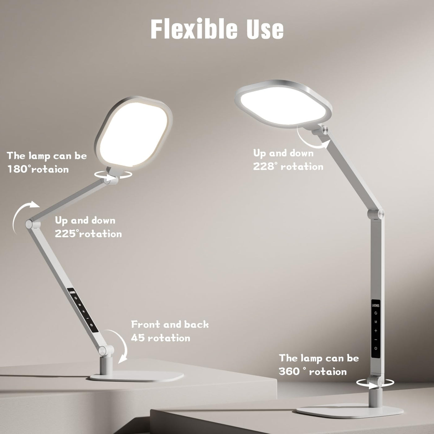 ?Perfect for Pole-Mounted Monitor Arm ?Ideal for Home Office and Video Calls ?Customizable Lighting ?Eye-Caring Desk Lamp ?Enhance Your Appearance ZOOM Light ?Adjustable Swing Arm--Standing Lamp Product Specification ?1200 Lumens ?4 Adjustable Pivot Points ?CRI >95 ?Memory Function ?18W AC Plug ? 84pcs LED Light Beads ? 33 inch Tall Desk Lamp ? 7 inch Full-screen Lamp Head ?10 Brightness Levels--10%-100% ?3 Color Temperatures--3000K-6500K ? Soft Touch control ?Timer Function--60 min/30 min off LitONES Floor lamp not only brightens you up in video conferencing, zoom meetings, video calls, but also provides you with quality lighting in remote working, home office, reading, podcasting, video recording, live streaming, photoshoot, gaming, vlogging and so on