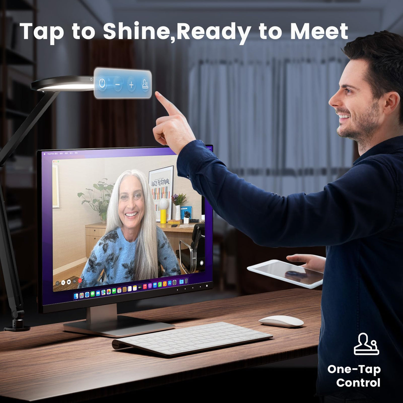 Q: What makes the LitONES desk lamp different from other desk lamps?A: The LitONES desk lamp stands out due to its double-sided dimmable design, adjustable swing arm for ultimate flexibility, and powerful LED technology that mimics natural sunlight. With features like memory settings and a dedicated video conferencing mode, it is tailored for both work and leisure, providing a comprehensive lighting solution.