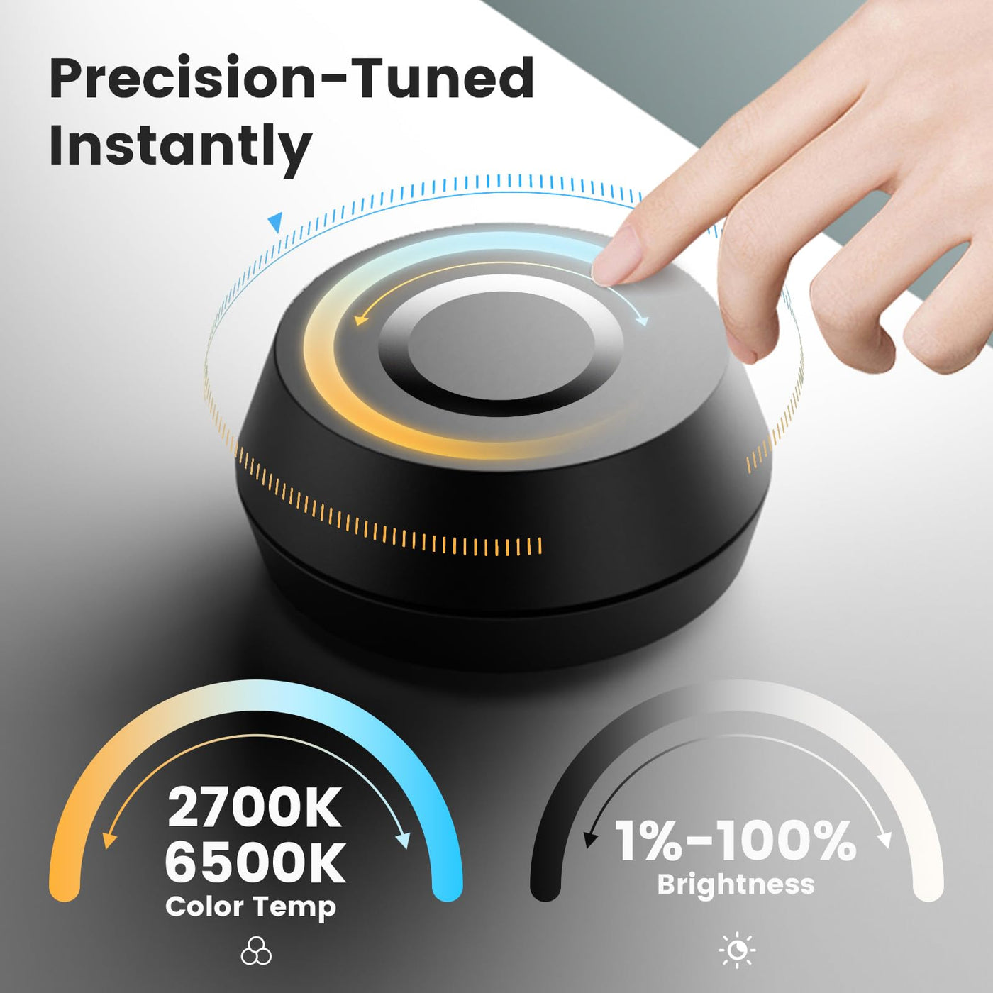 Q: How does the dimming feature work on the LitONES desk lamp?A: The desk lamp comes with an upgraded remote control that allows you to smoothly adjust the brightness from 1% to 100% and change the color temperature between 2700K and 6500K. This flexibility enables you to create the perfect lighting environment for various tasks, whether you need soft ambient light or bright task lighting.