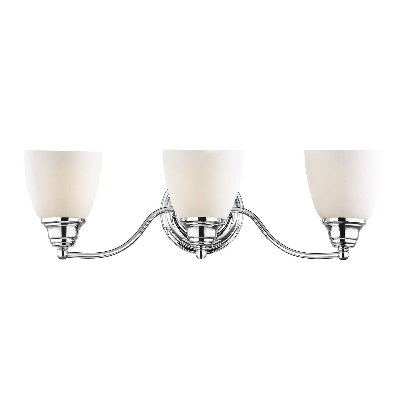 The Livex bath light features hand-blown satin opal white shades that elegantly extend from gently curved steel arms. The round backplate provides a sturdy foundation, while the small orb finials at both ends reinforce the fixtures curvaceous motif. Crafted from well-made alloy steel, this bath light is not only lightweight and durable but also adds a sophisticated touch to your decor. The polished chrome finish complements the overall design, making it a stylish addition to any traditional or modern bathroom setting.