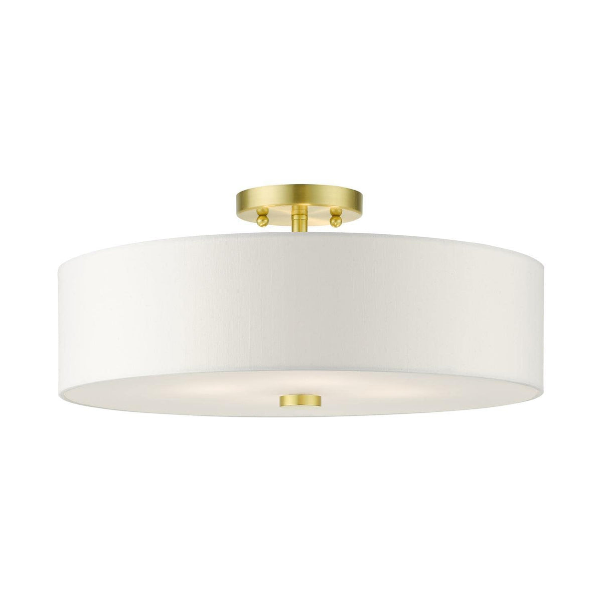 Livex Lighting 51055-12 Meridian Collection 4-Light Semi Flush Mount Ceiling Light With Off-White Hardback Fabric Shade, Satin B