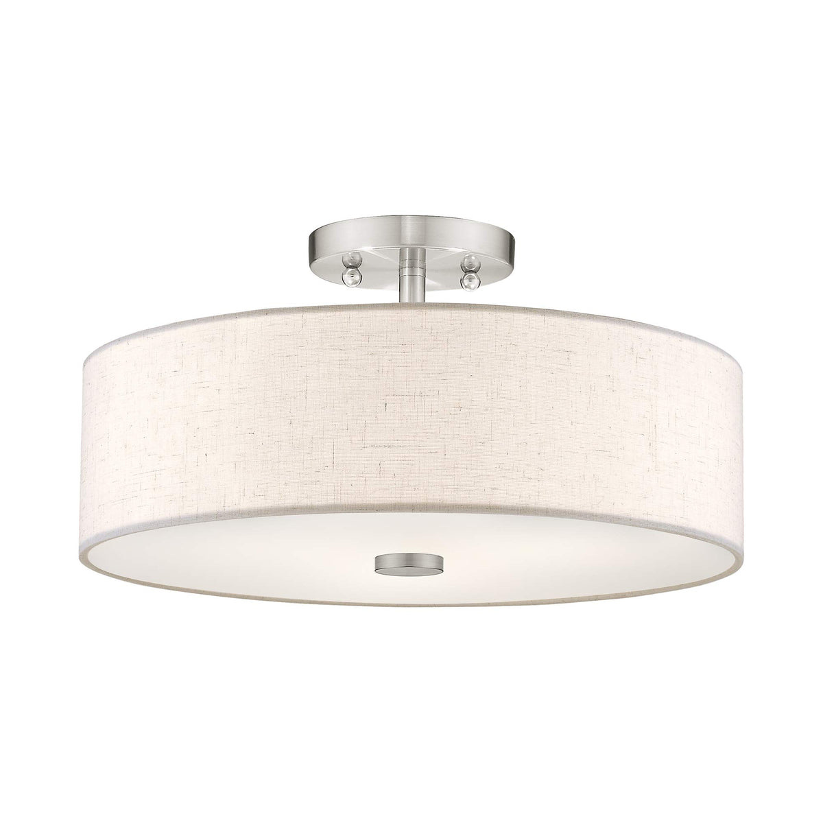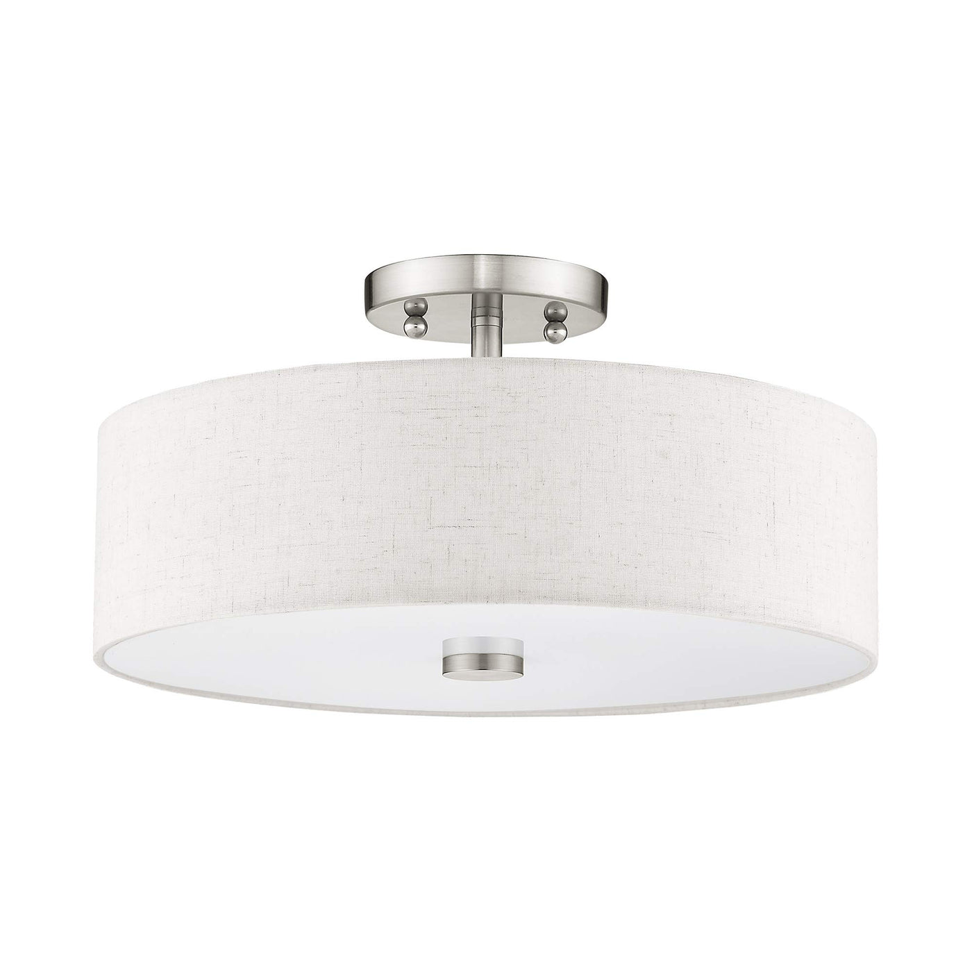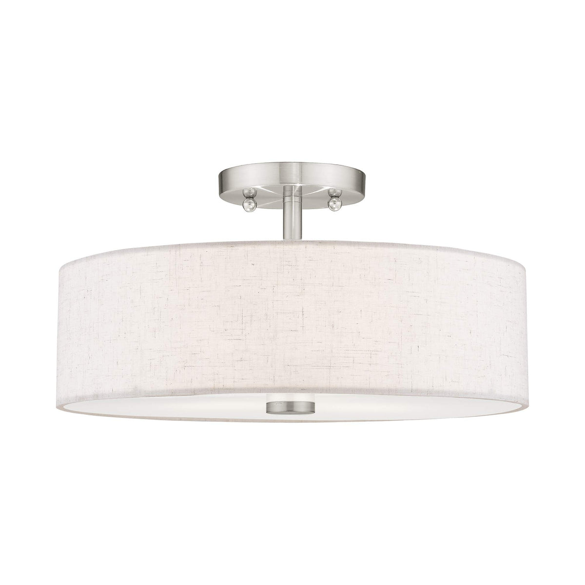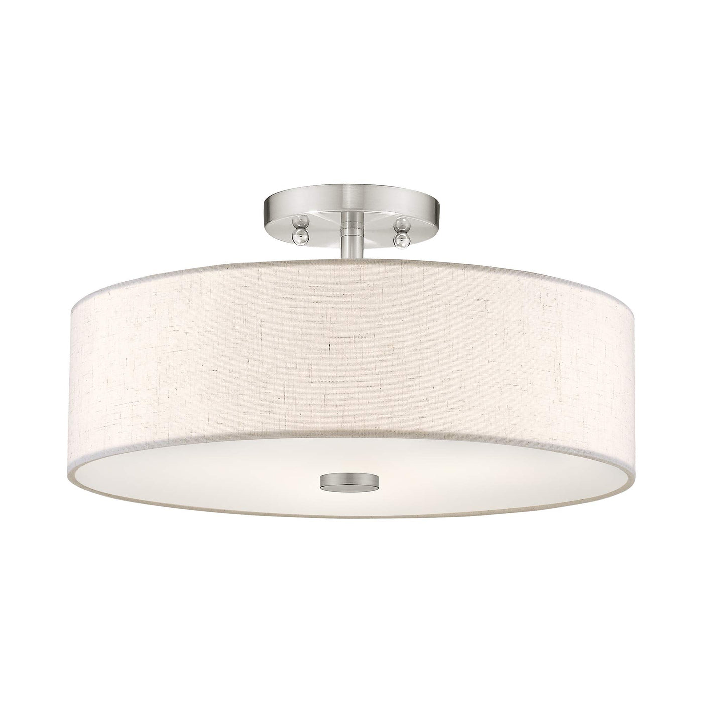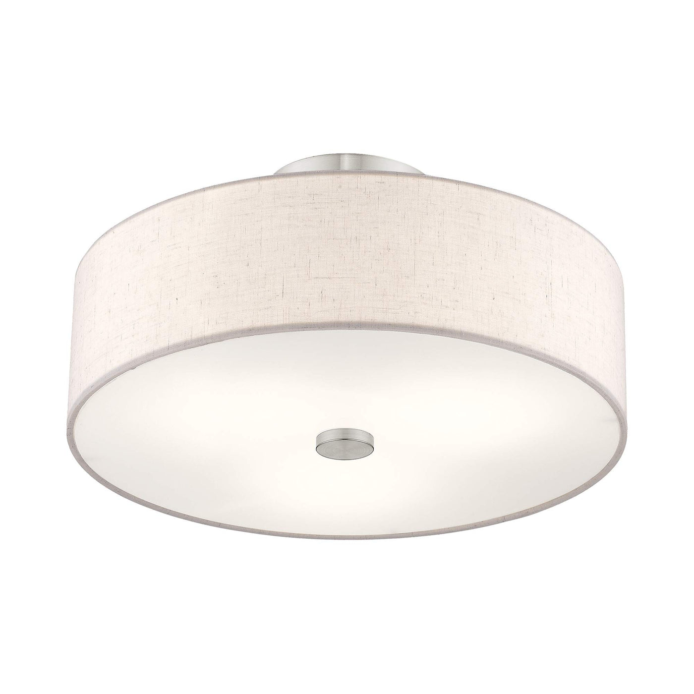 Add Style To Any Room With This Elegant Semi Flush Mount. The Design Features A Beautiful Hand Crafted Oatmeal Fabric Hardback Drum Shade In A Stylish Brushed Nickel.