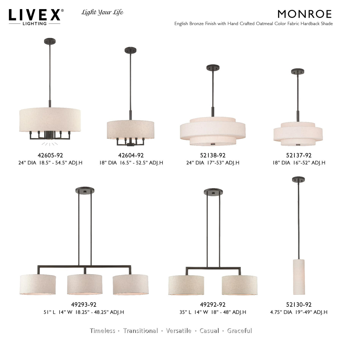 Q: What are the dimensions of the Livex Lighting Meridian Pendant?A: The dimensions of the Livex Lighting Meridian Pendant are 24 inches in length, 24 inches in width, and 53 inches in height.