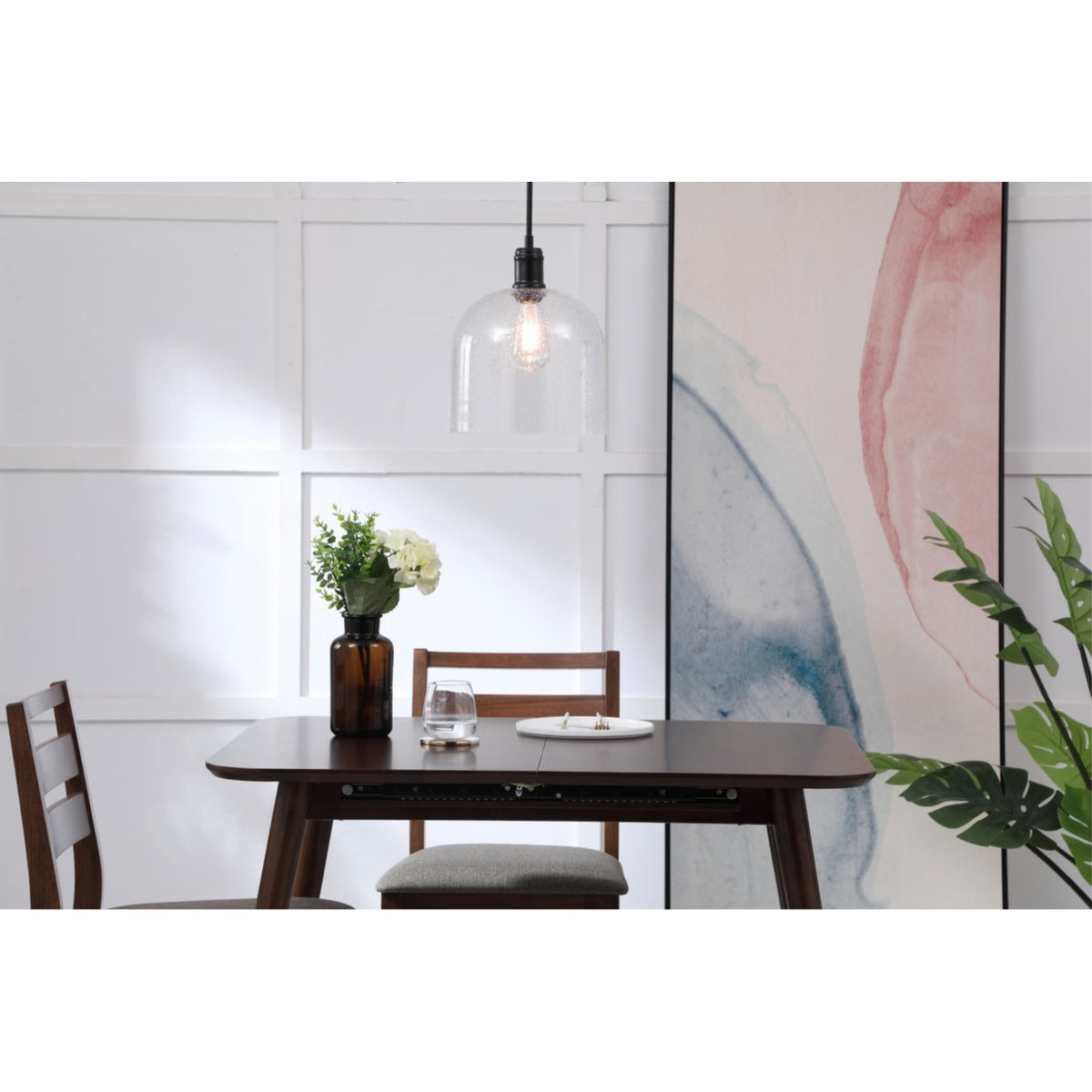 Living District 1-Light Metal Pendant Light, Black and Clear Seeded, Model LD6213BK