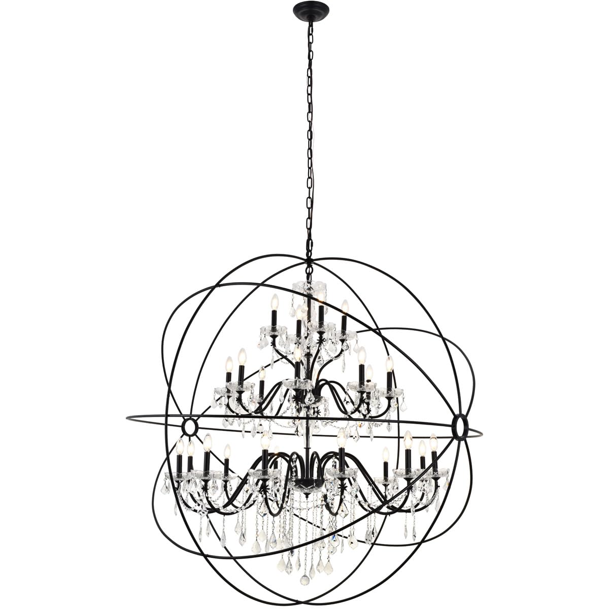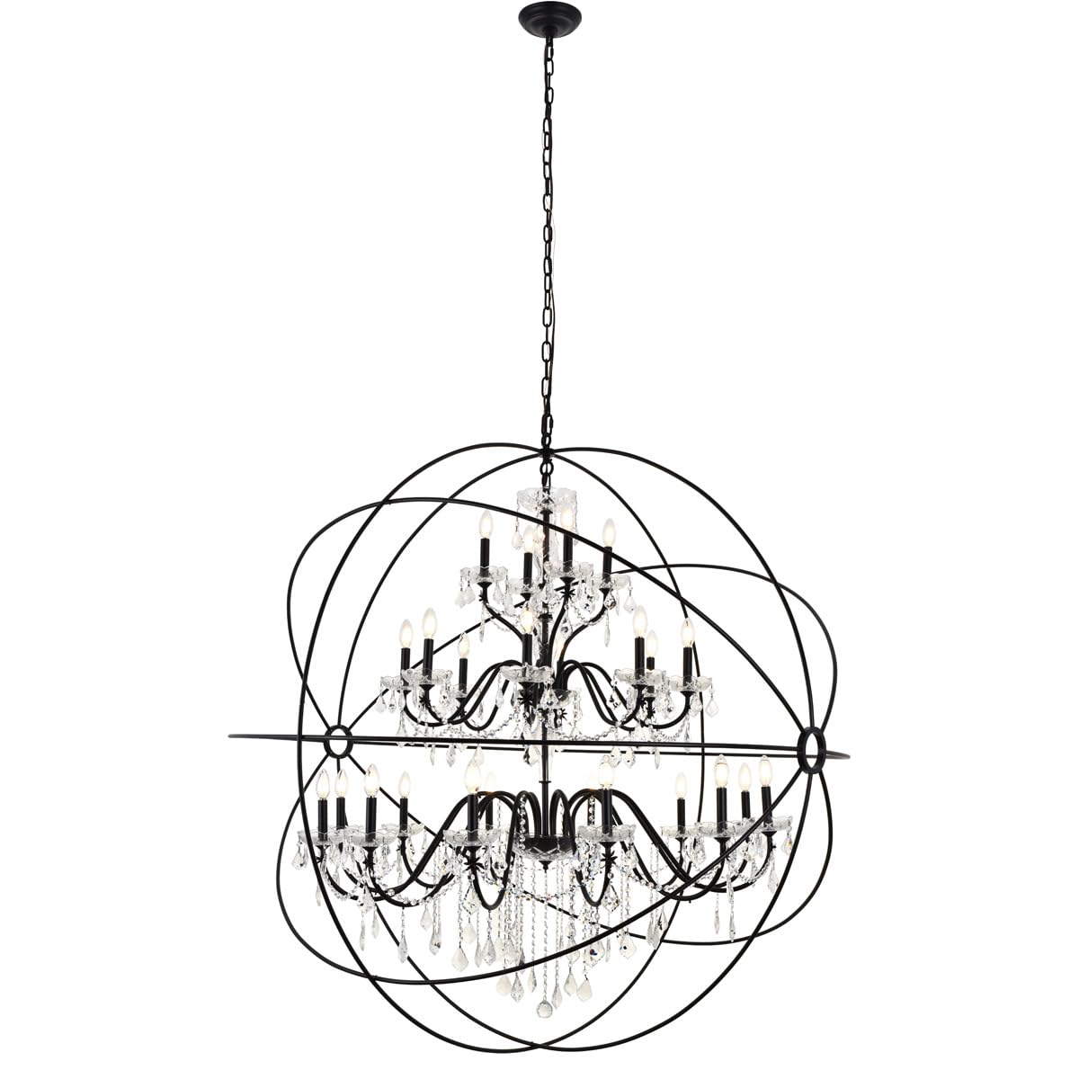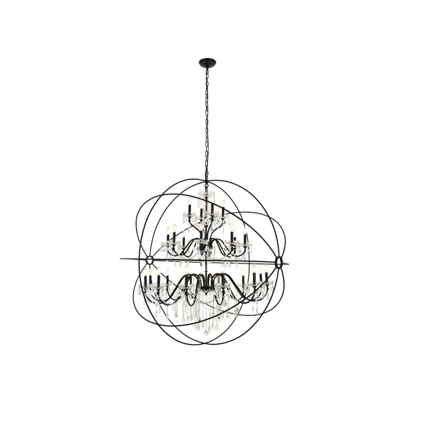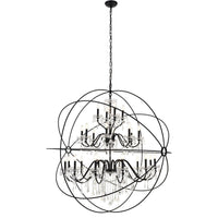 Living District 24-Light Black Metal & Crystal Pendant Light - Transitional Design