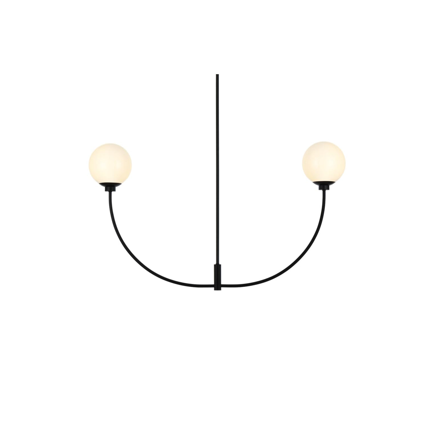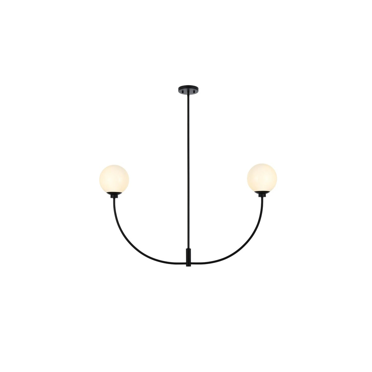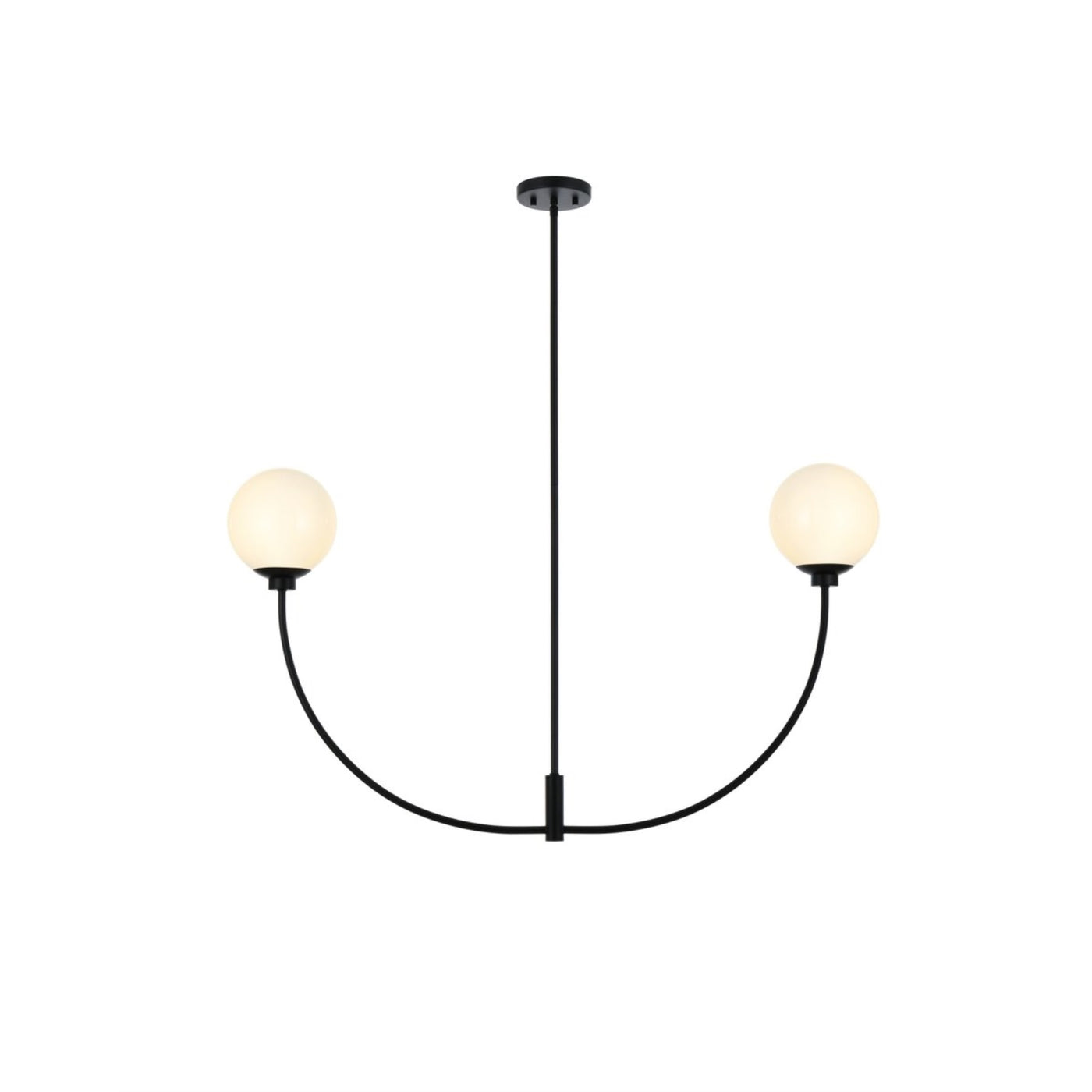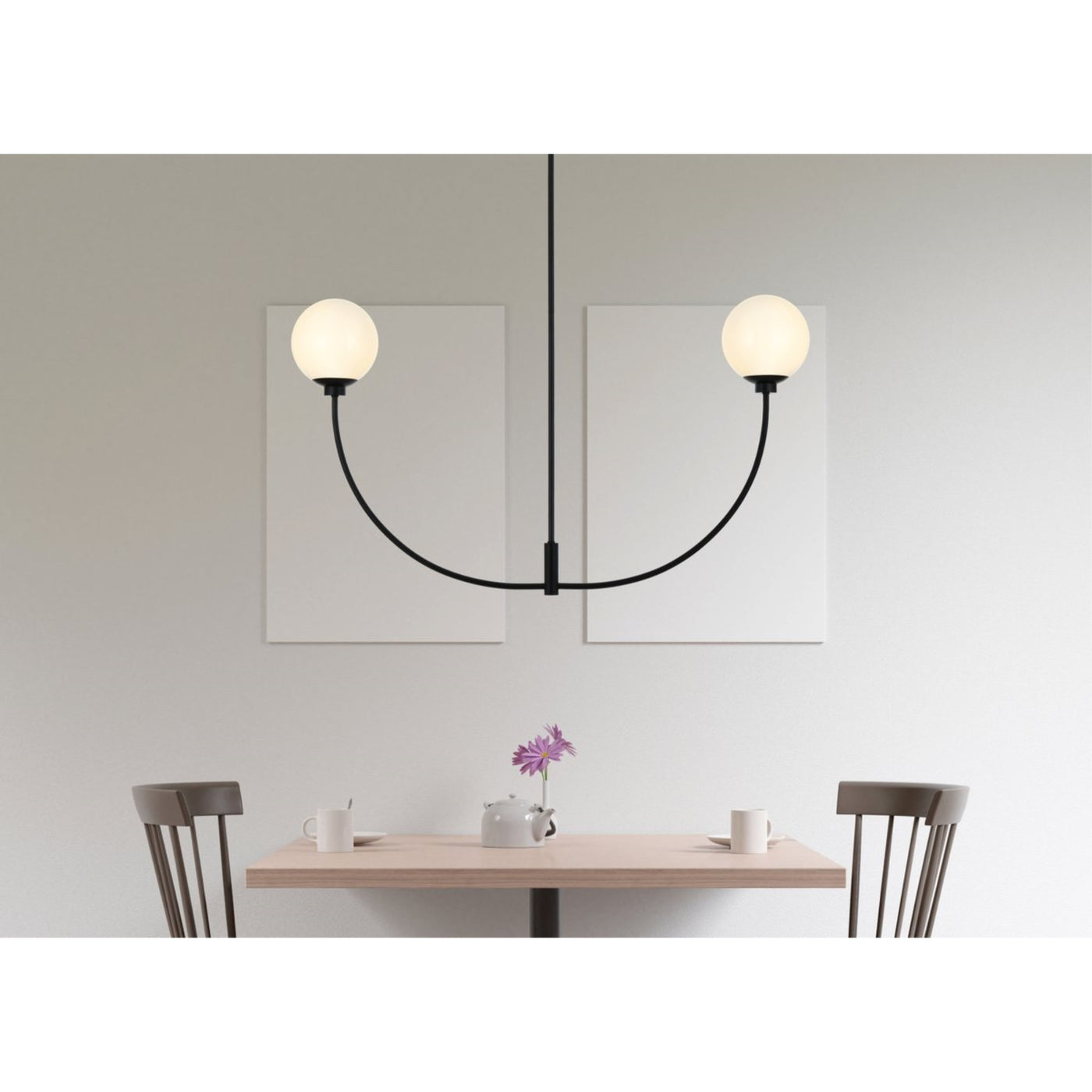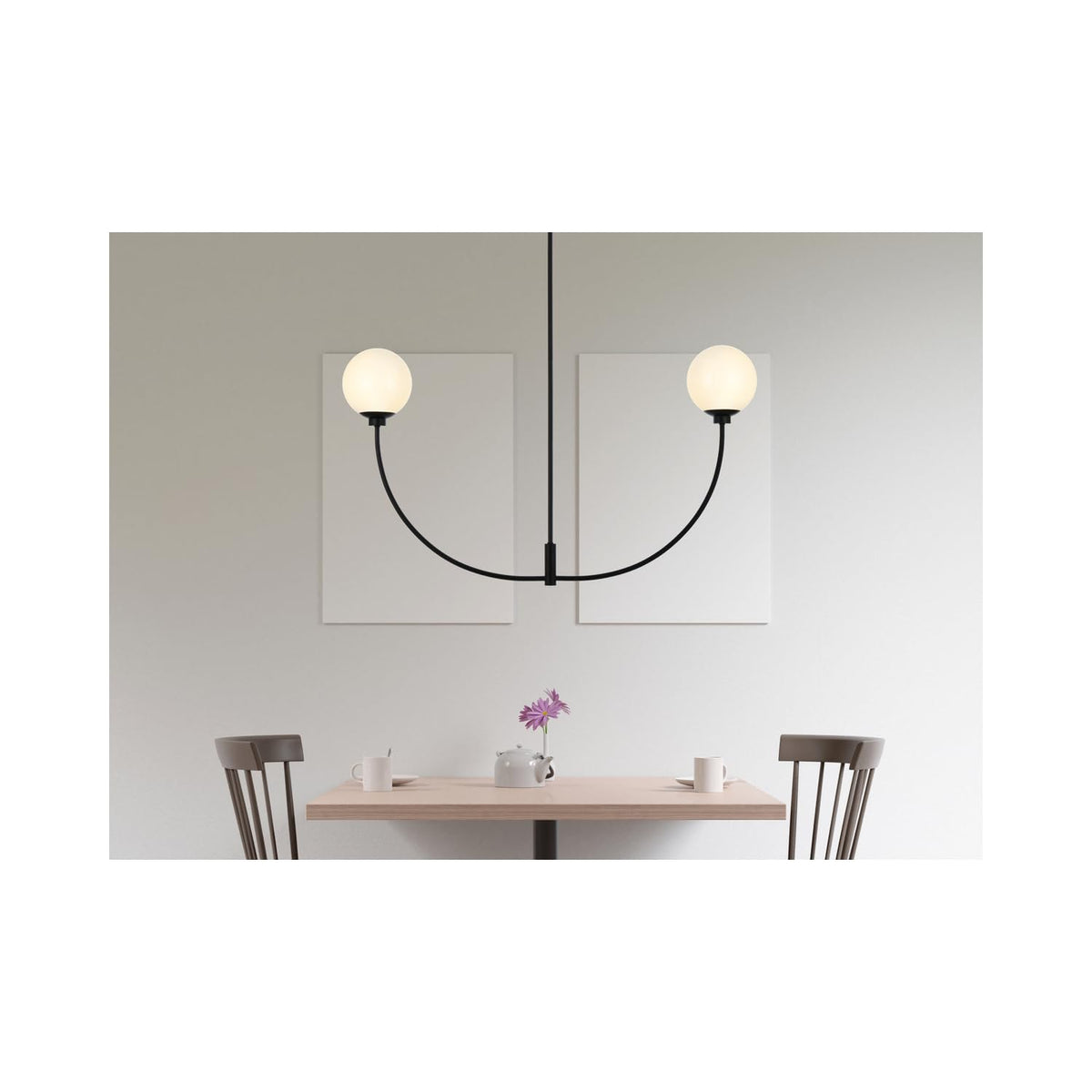 Living District 24" Black/White Metal/Glass Chandelier, 2-Light Modern Lighting Fixture