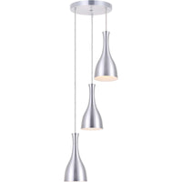 Living District LD2408BN Aiken 3 Light Burnished Nickel Pendant. Style: modern/ industrial. Collection: Aiken. Finish Color: BurnishedNickel. Hardware Finish: Burnished Nickel. Fixture Material: Aluminum. Product Shape: cone. Hardware Material: Aluminum. Dimension(In): 14(W) x 11.4(H) x 14(L). Shade Dimension(In): 5.5(W) x 11.4(H). Canopy Dimension(In): 9.8(W) x 1(H). Hanging Height Min/Max(in): 17.4/90.4. Height Is Adjustable?: Yes. Height Device Adjustable?: Yes. Type Of Hanging Device: Cord. Chain, Rod, Or Cord Length(In): 79. Chain, Rod, Or Cord Finish: Clear. Wire Included(In): 79. Wire Color: Clear. Light Direction: Down. Shade Included: Yes. Lighting Canopy: Yes. Bulb: (3)40W E26 Base(Not Included). Dimmable: yes. Voltage: 110-125V. UL & Ulc Standard: no.