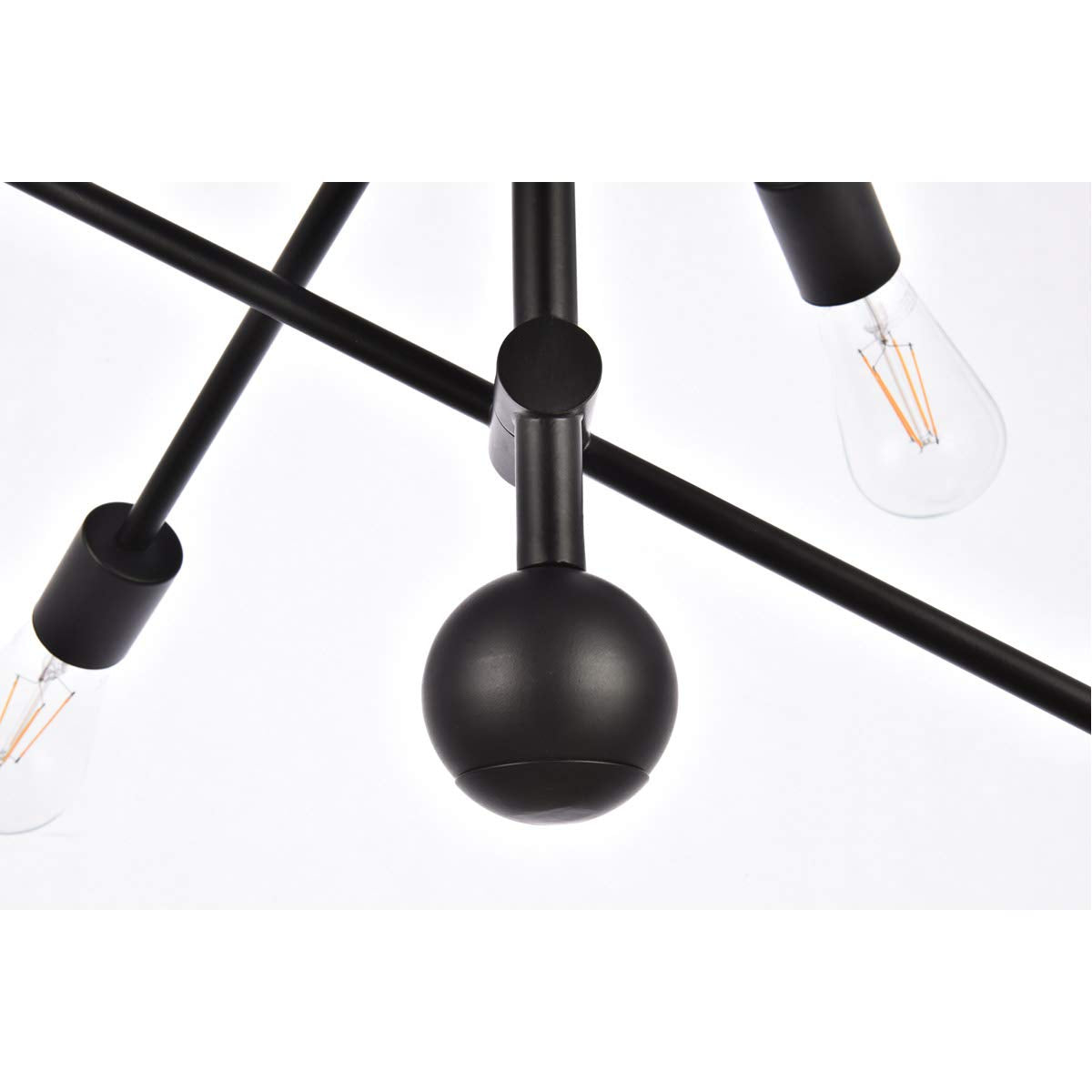 Modern sophistication with a jaunty presentation. Axel wall lamps feature five arms intersecting an oval base at different points to direct light in any direction. A total of five light sources (bulbs not included) promises utility in a variety of applications from hallway to accent lighting. The absence of shades says industrial; the design says penthouse. The smooth steel hardware is finished in austere black with soft bronze sockets adding a bit of tradition. Stylish and cutting-edge without being too eccentric.Features:Materials: MetalFinish: BlackHanging chain allows for mounting between 28 and 82 inches from the canopyAdjustable arms direct light in any directionRequires an incandescent or LED E26 bulb (not included)Fully dimmable when used with a dimmable bulb and compatible dimmer switchSpecifications:Product Dimensions: 21''H x 29''W x 29''DProduct Weight: 6.61 lbsHardware: Fixture Shape - PendantBulb Type: Bulb Socket - E26Number of Lights: 6Voltage: 110V - 125VWattage: Bulb Wattage - 60W Max Wattage - 360WHardware: 72'' of black wire includedAdjustability: Height AdjustableProduct Height: Hanging Height - 28'' Min to 82'' Max