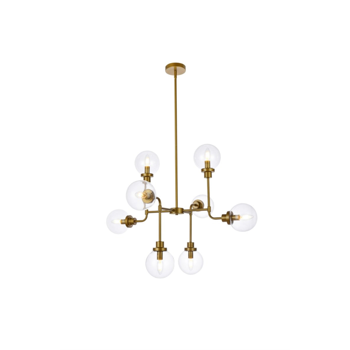 Living District Brass 8-Light Pendant Ceiling Light With Clear Shade - Modern Home Decor 36" W