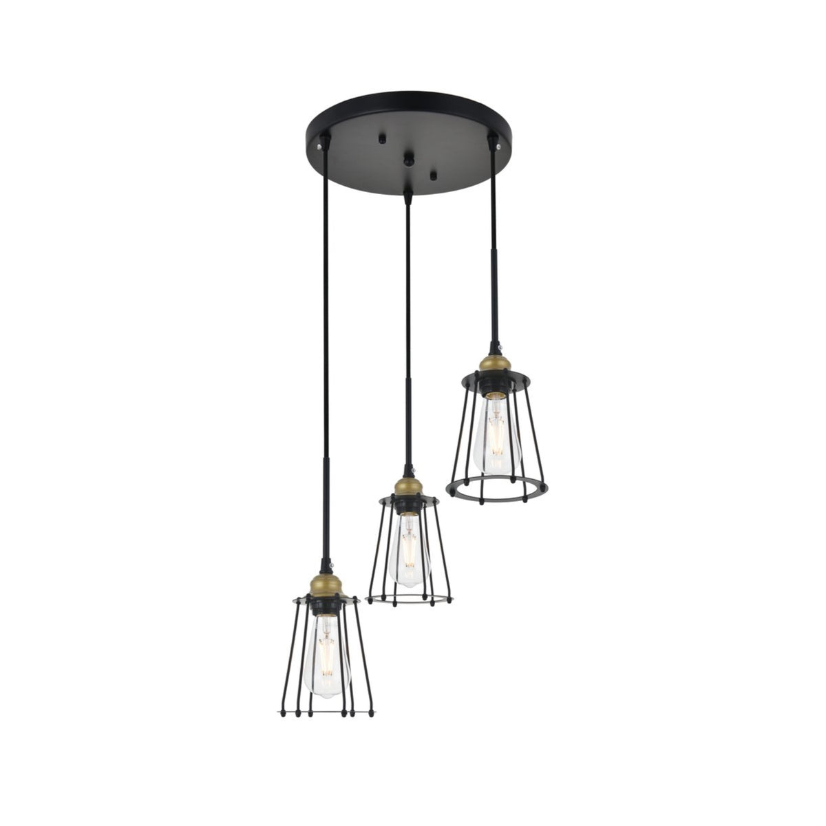 Living District Brass And Black 3-Light Pendant Ceiling Light - Modern Home Decor, 16"W X 9.2"H