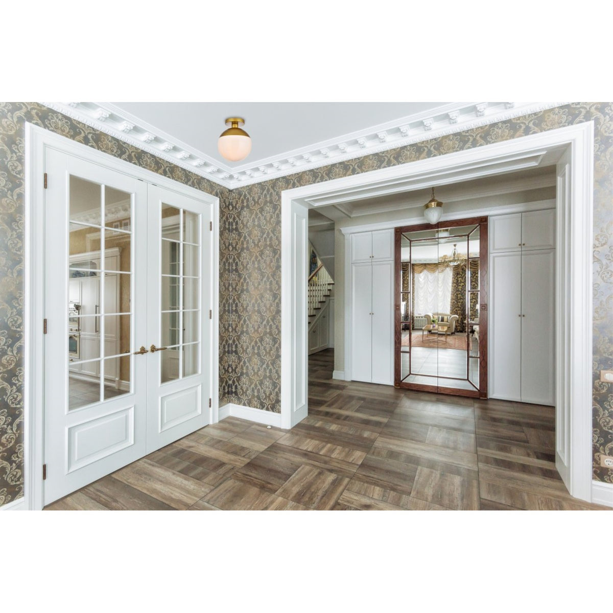 Living District Brass Flush Mount Light, 1-Light, Frosted White Glass, 10inx10inx12in, Model LD6066BR