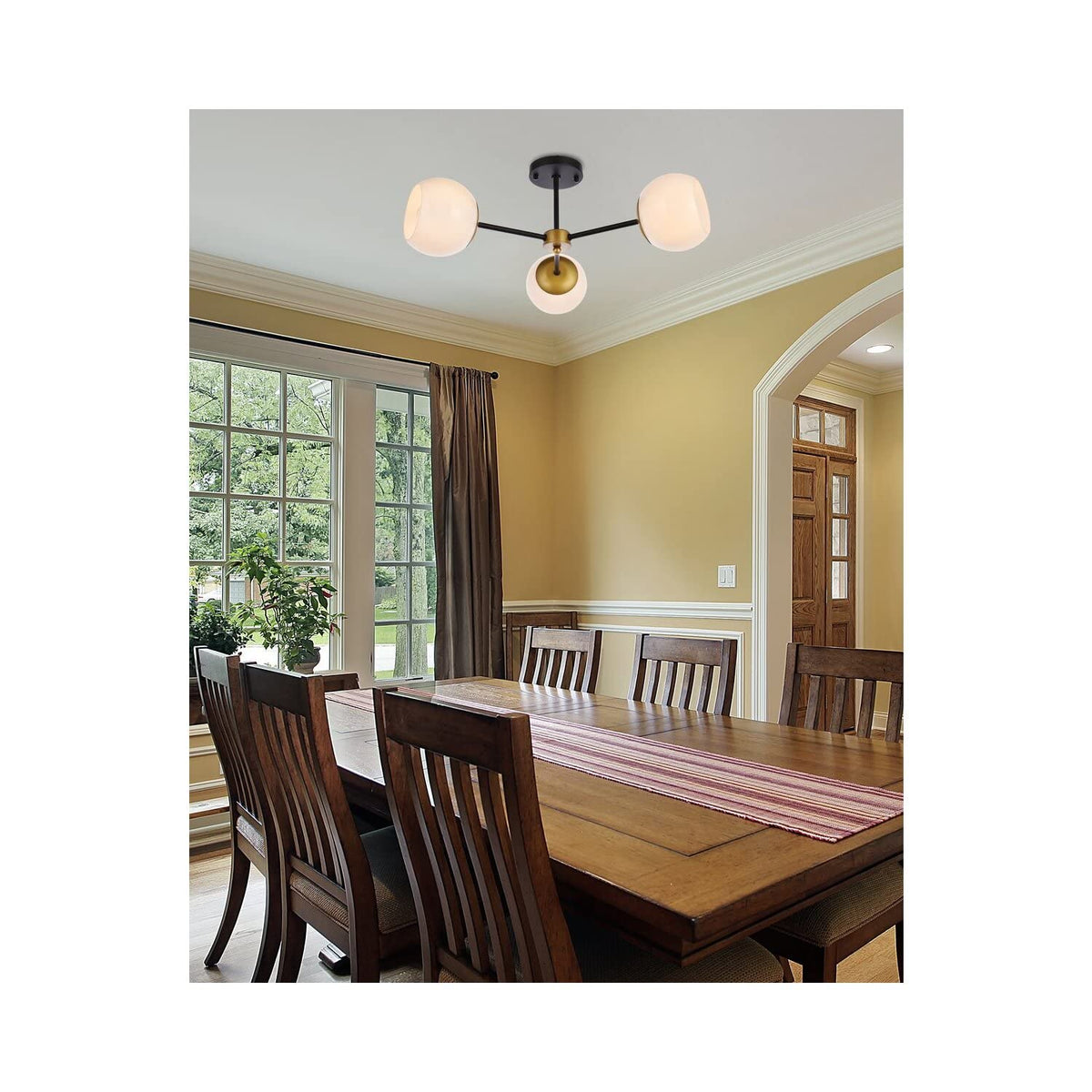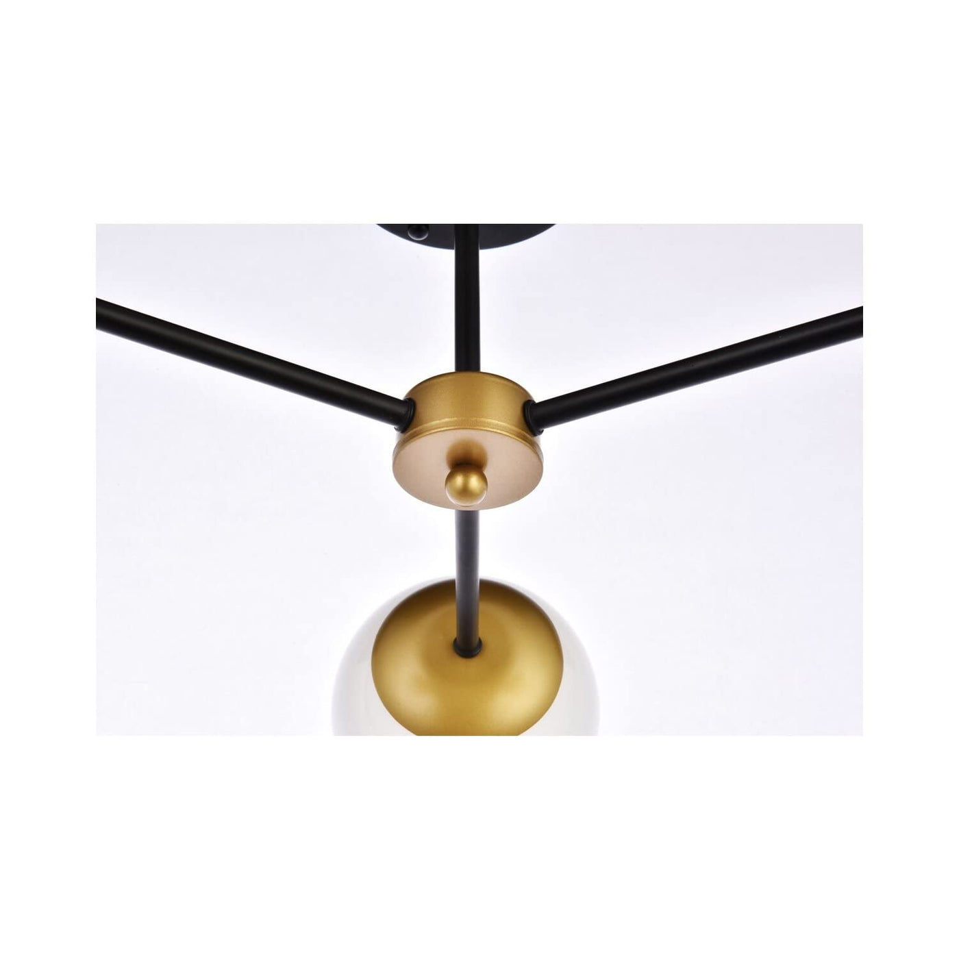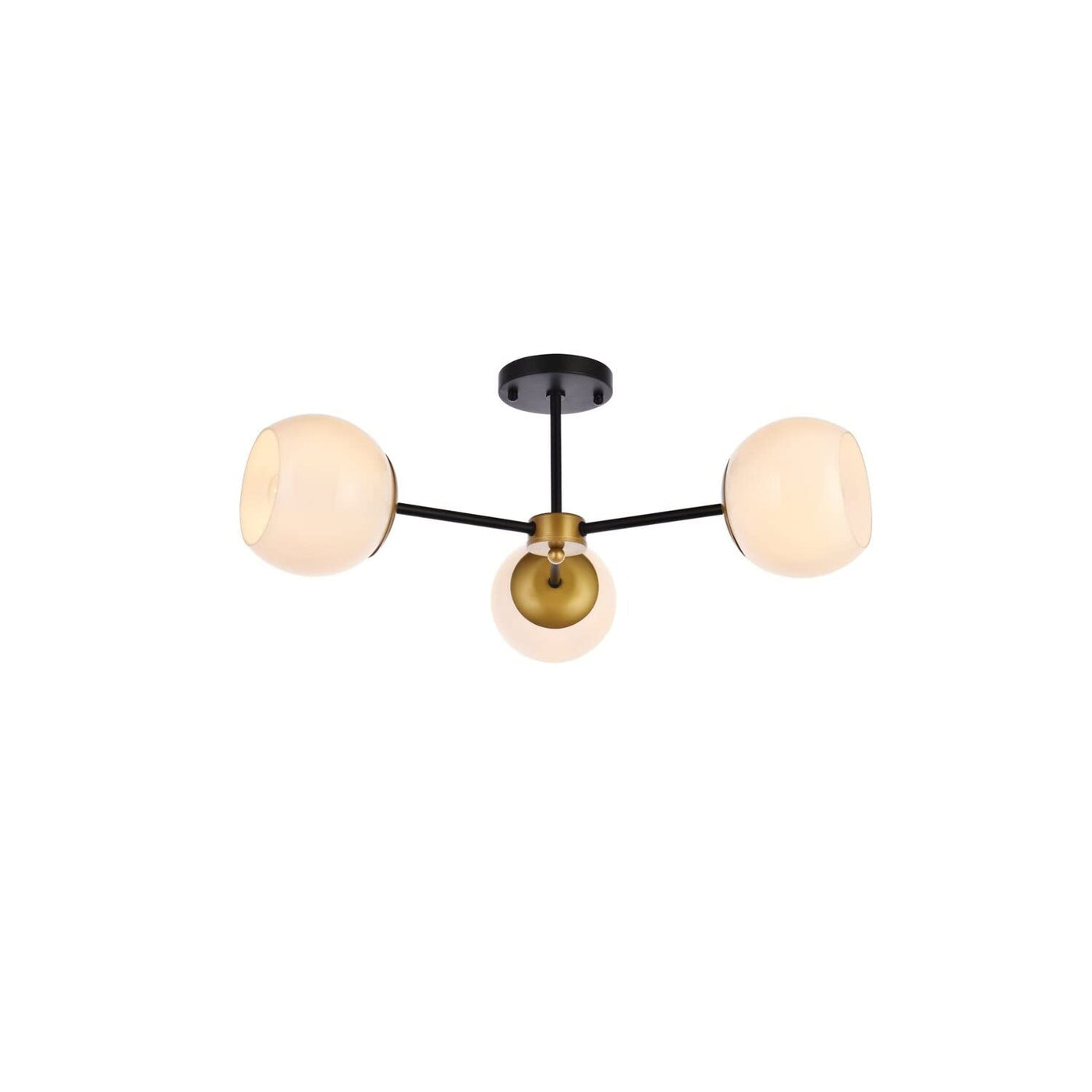 The Briggs collection pendant illuminates in all directions, creating a wonderful display of artistic style and brilliance. If your home was a modern art exhibit, then you have curated the best possible piece of art. With six lights pointing in different directions, and the painted finish gleaming in modern beauty, you won't have to worry about being up to date because you already are (light bulbs not included). This modern light fixture is adorned with spherical glass globes. The hardware finish brings an element of sophistication that can accentuate all styles of interior design.Features:- Materials: Iron metal, glass- Finish: Black, brass and white- Outstretched arms are punctuated with white glass globes- Requires 3 E26 bulbs (bulbs are not provided)- 3 lights that illuminate in all direction, fixture is dimmable- Ideal for lighting for the bathroom, hallway, and entrywaySpecifications:- Product Dimensions: 10H x 26W x 26D- Product Weight: 3.9 lbs- Hardware: Fixture Shape - Flush Mount- Bulb Type: Bulb Socket - E26- Number of Lights: 3- Voltage: 110V - 125V- Wattage: Bulb Wattage - 40W, Max Wattage - 120W- Hardware: 10 of black wire included- Adjustability: Not Height Adjustable
