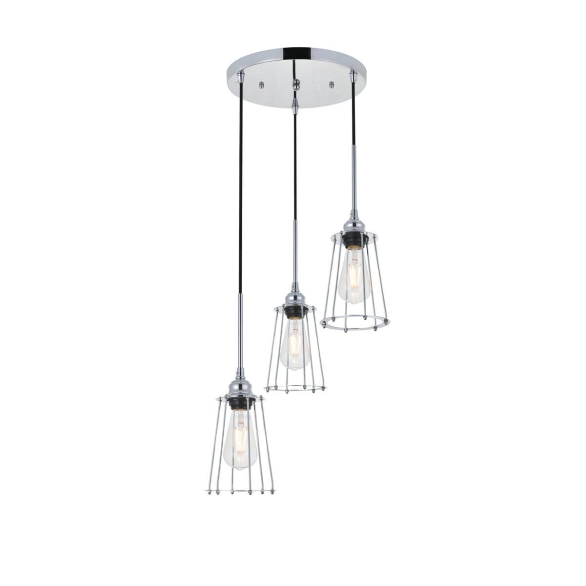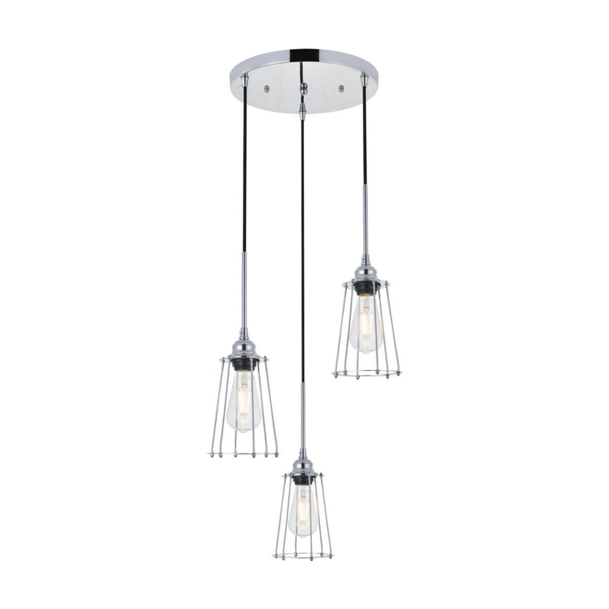 Living District Chrome 3-Light Pendant Light Fixture - Modern Home Ceiling Decor, 16"W X 9.2"H