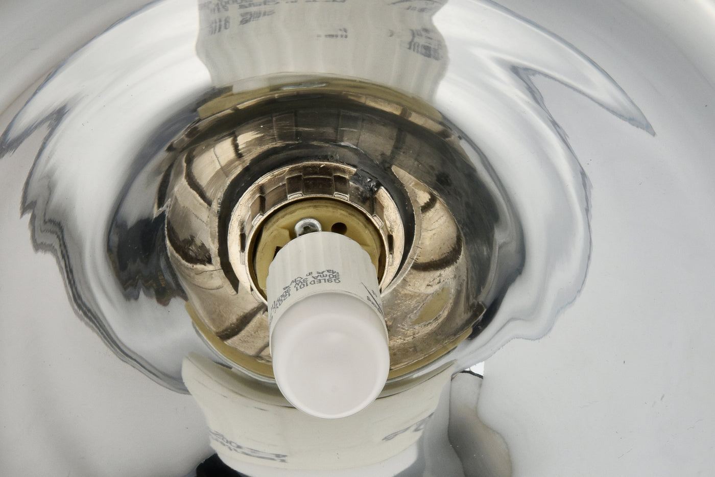 - **Elegant Design:** Featuring a hemispherical opaque glass shade in a sleek chrome finish, this hanging fixture embodies futuristic elegance, creating a visually striking focal point in any room.