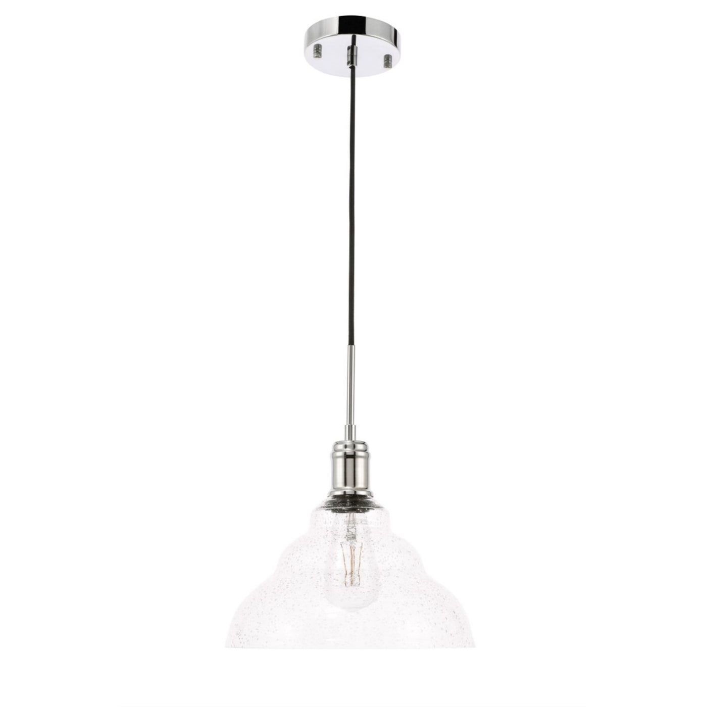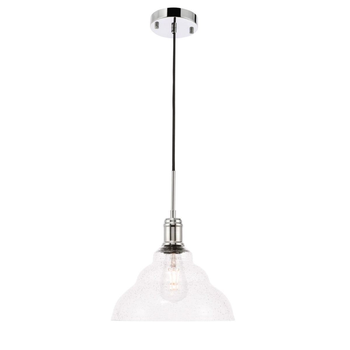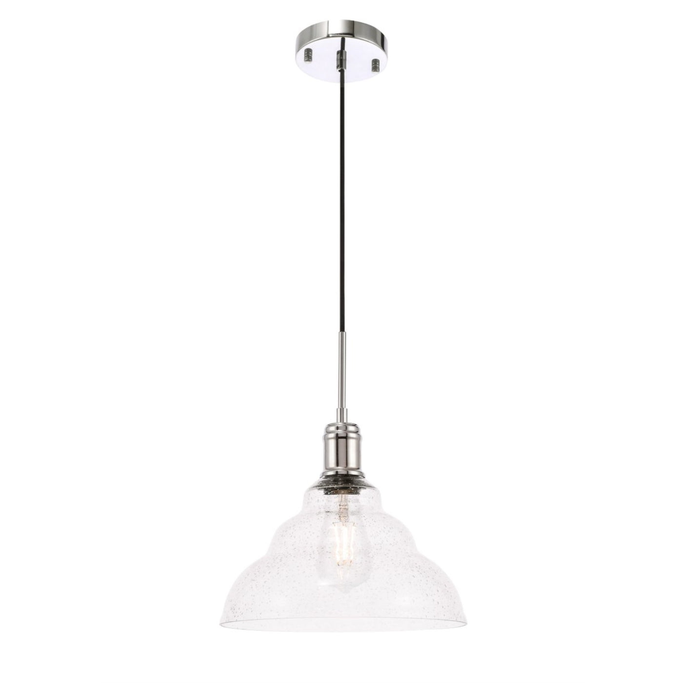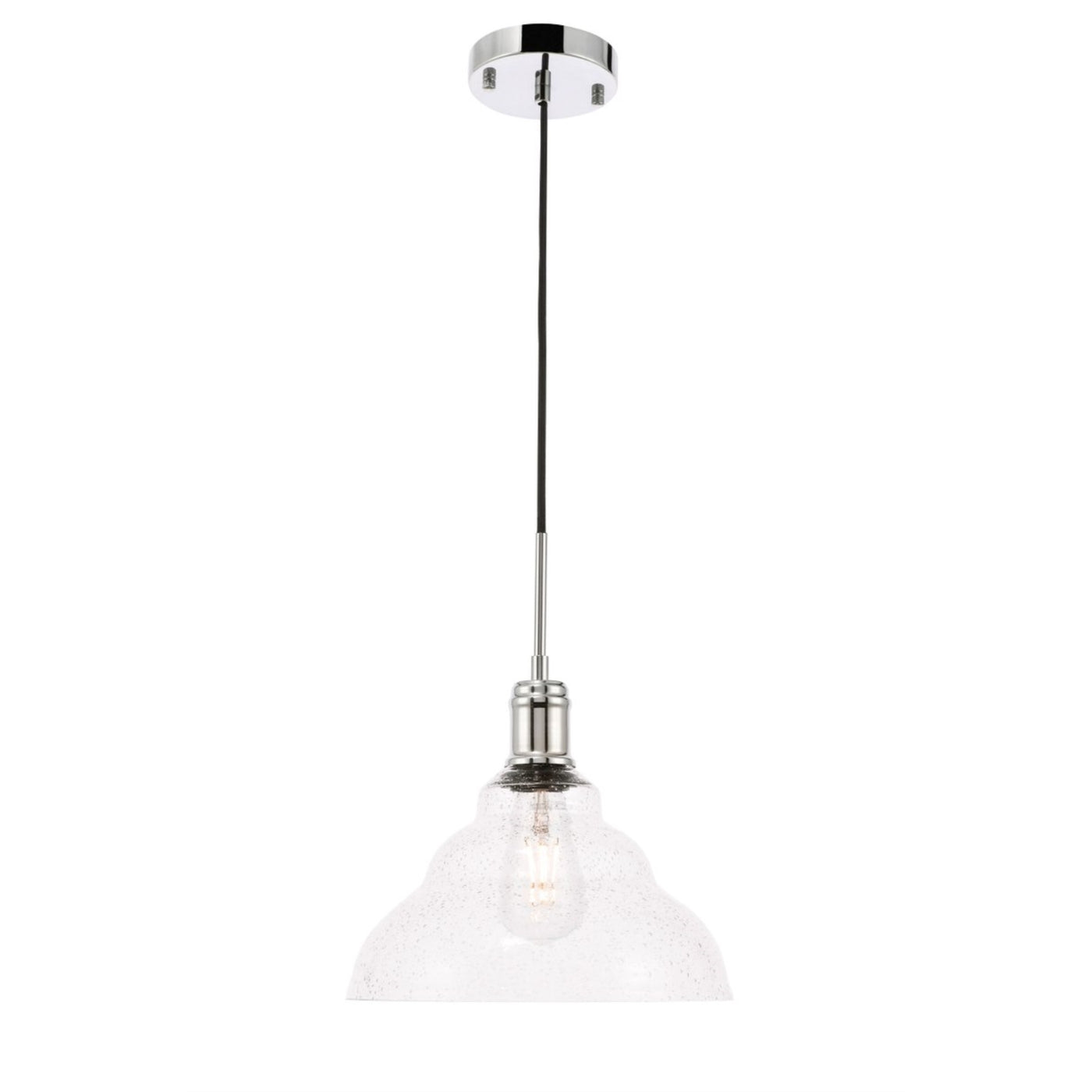 Living District Chrome Modern Pendant Light With Clear Seeded Glass Shade, 1 Light