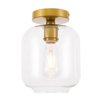 Living District Collier 1-Light Metal & Glass Flush Mount In Brass/Clear