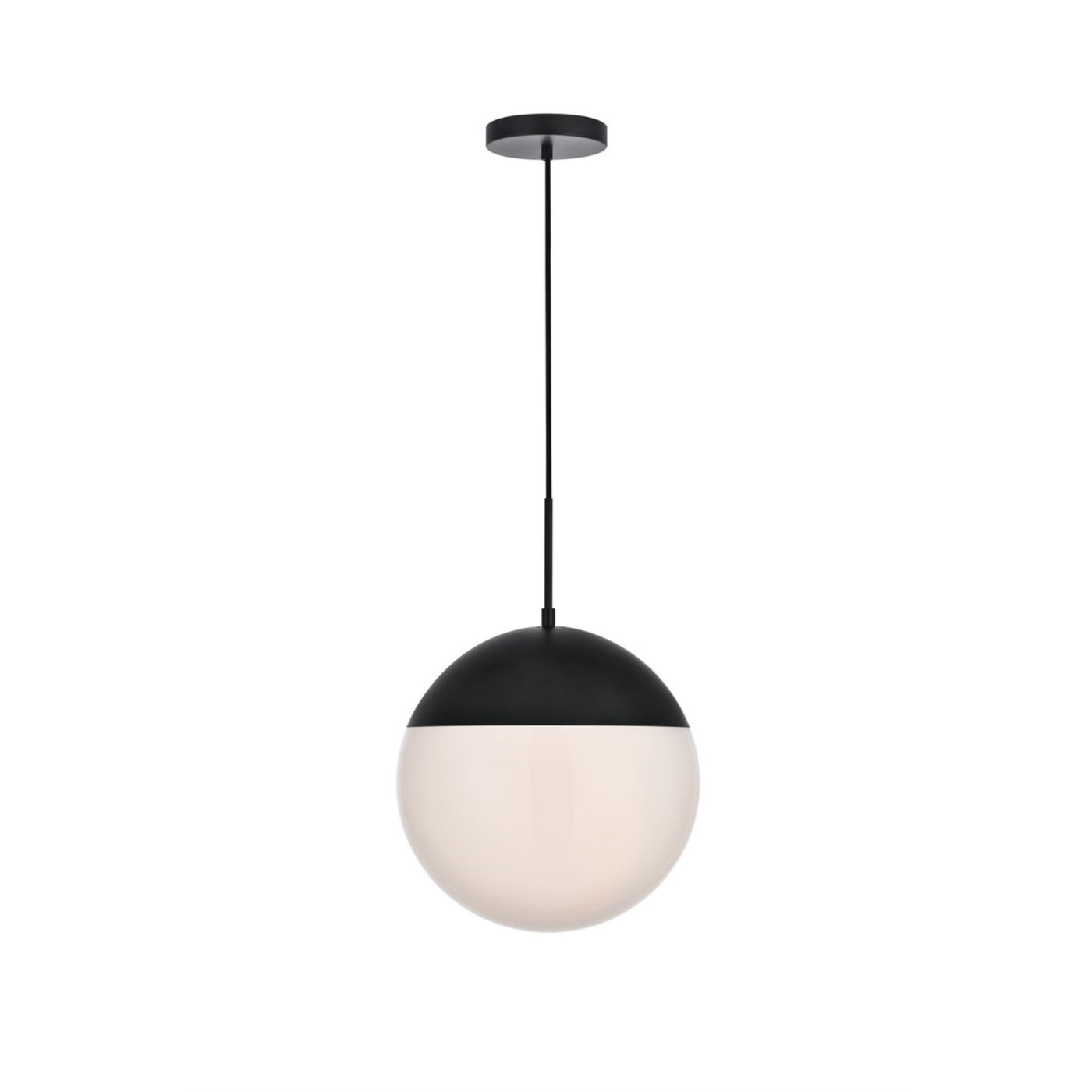 Refined style with a practical design, Eclipse hanging pendant lamps bring cosmopolitan sophistication anywhere, especially to an entryway, office, bathroom, bedroom, or kitchen. The smooth iron frame features a disk-shaped canopy and comes in a black finish. An adjustable black cord allows you to vary the hanging height from 21 to 70 inches. A touch of color on top of the frosted white spherical glass shade brings character to this classic style. Living in the big city has never been this easy.
