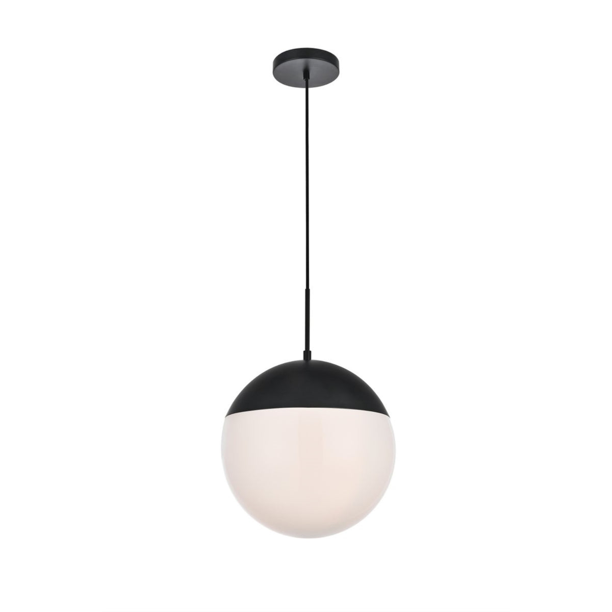 Living District Eclipse 1 Light Black Pendant With Frosted White Glass