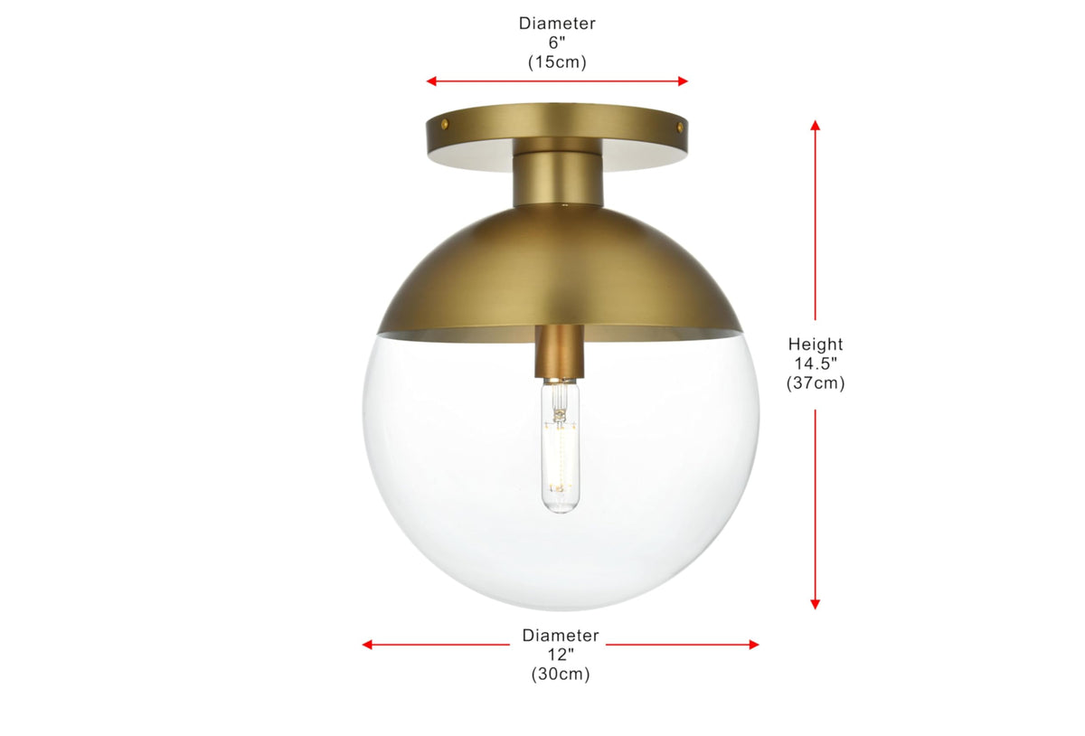 Living District Eclipse 1 Light Brass Flush Mount with Clear Glass