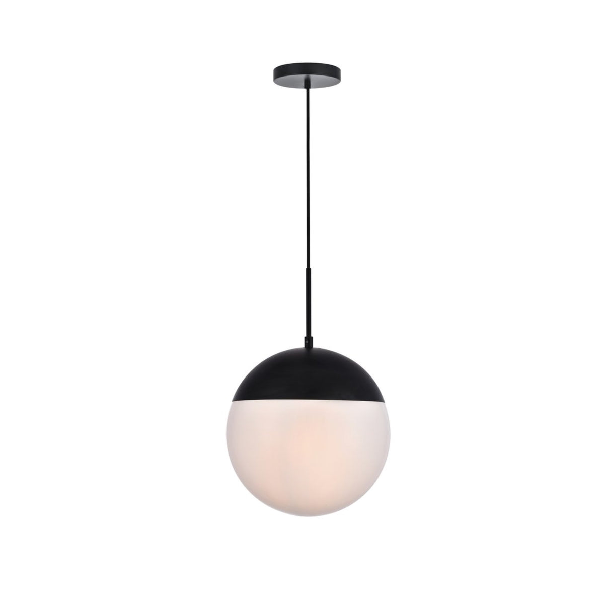 Product Specifications: SKU: LD6038BK Finish: Black / Frosted White Manufactured By: Elegant Lighting Depth: 12 in. Height: 13 in. Maximum Height: 69 in. Minimum Height: 19.5 in. Nominal Height: 13 in. Nominal Width: 12 in. Pendant Size: Full Sized Shade Diameter: 11.5 in. Shade Height: 11.75 in. Width: 12 in. Bulb Included: No Bulb Base: Medium (E26) Dimmable: Yes Genre: Transitional Glass Features: Frosted Glass Hanging Options: Cords Light Direction: Ambient Lighting Material: Other Metals, Glass Number of Bulbs: 1 Pendant Type: Single Pendant Shade Color: White Shade Material: Glass Shade Shape: Globe Voltage: 110, 125 Wattage: 40 Watts Per Bulb: 40 Collection: Eclipse Country Of Origin: China Location Rating: Dry Location