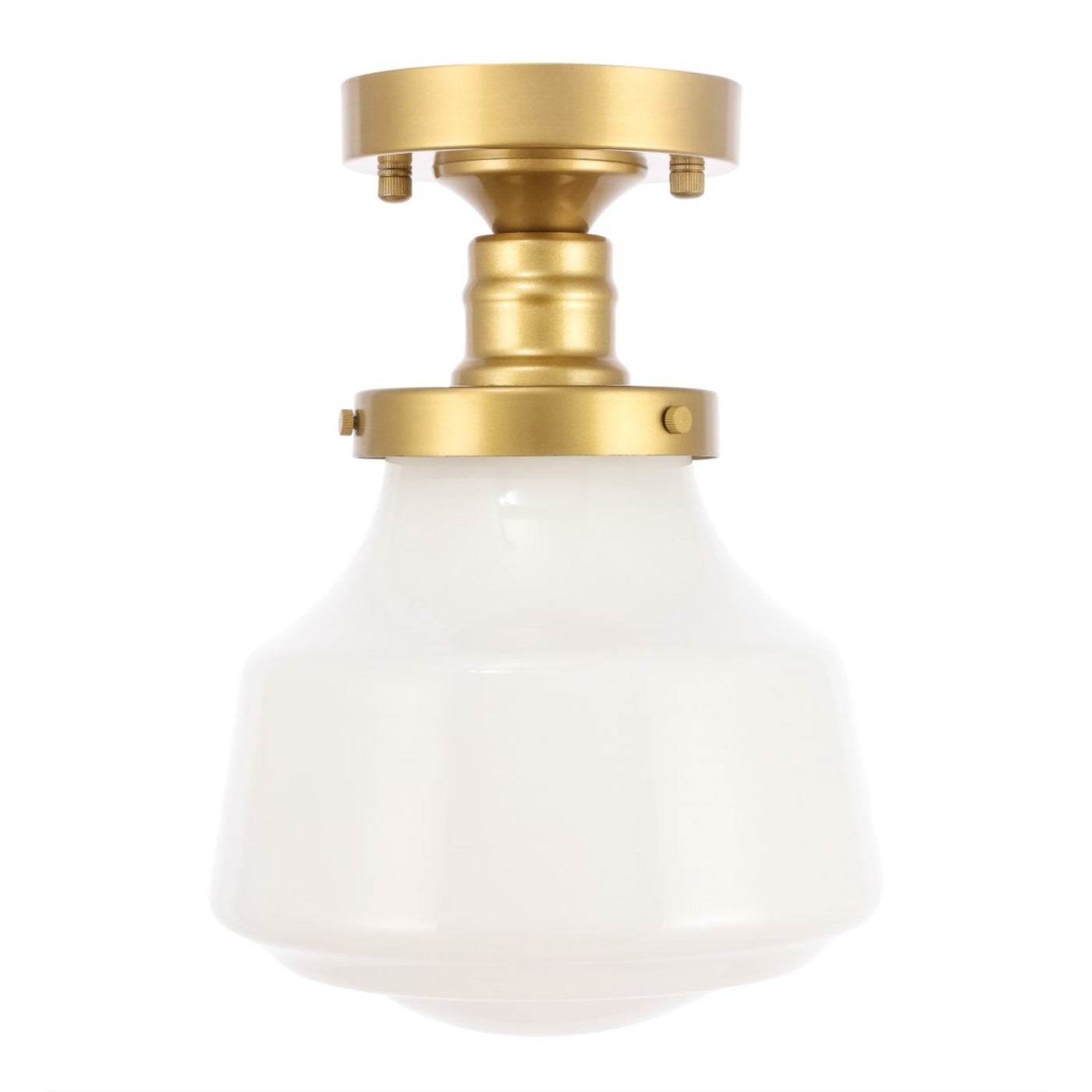 Living District Flush Mount Light, 1-Light, Metal & Glass, Brass Finish, Model LD6251BR, Frosted White Glass