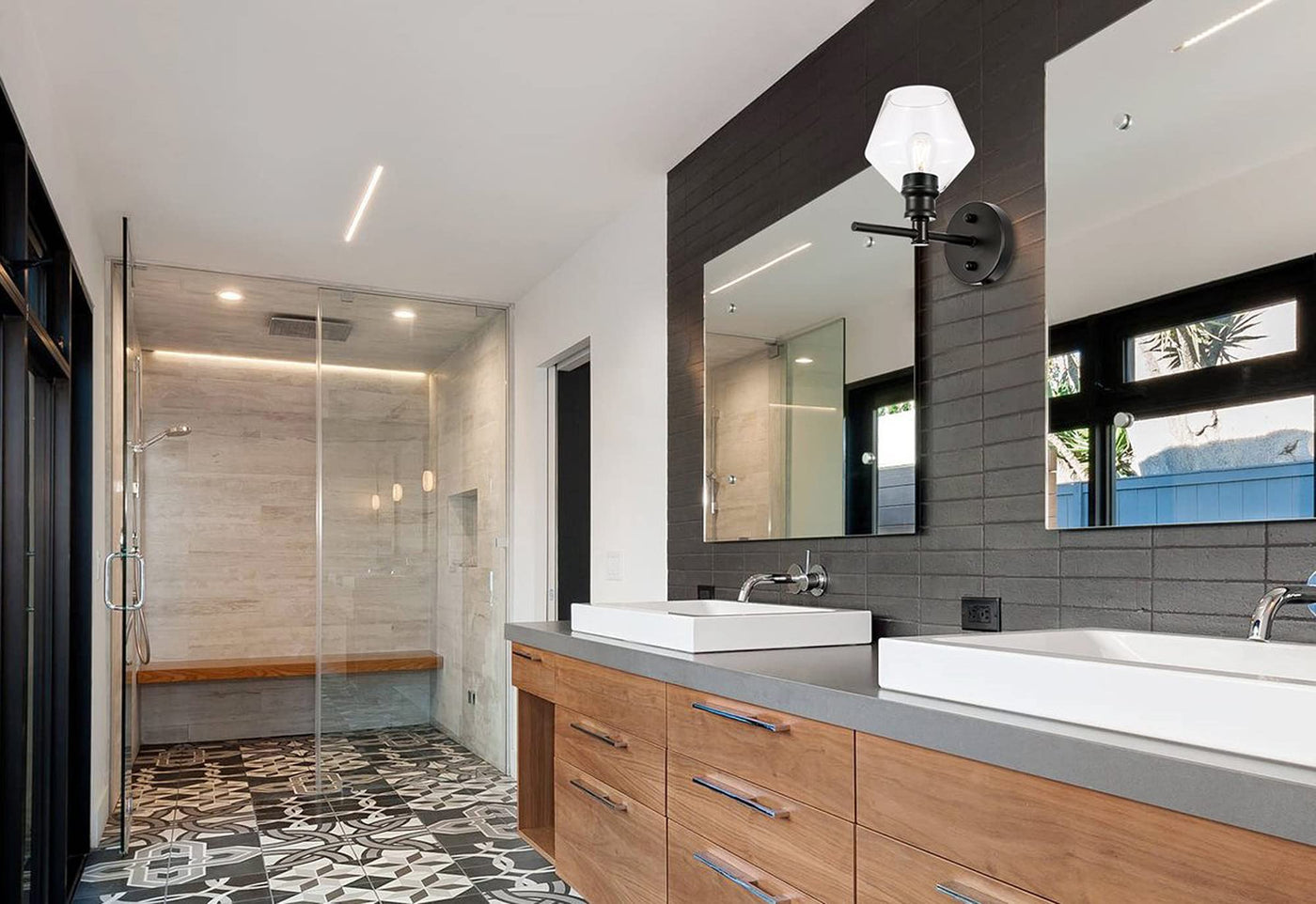 Living District Gene 1 Light Black And Clear Glass Wall Sconce
