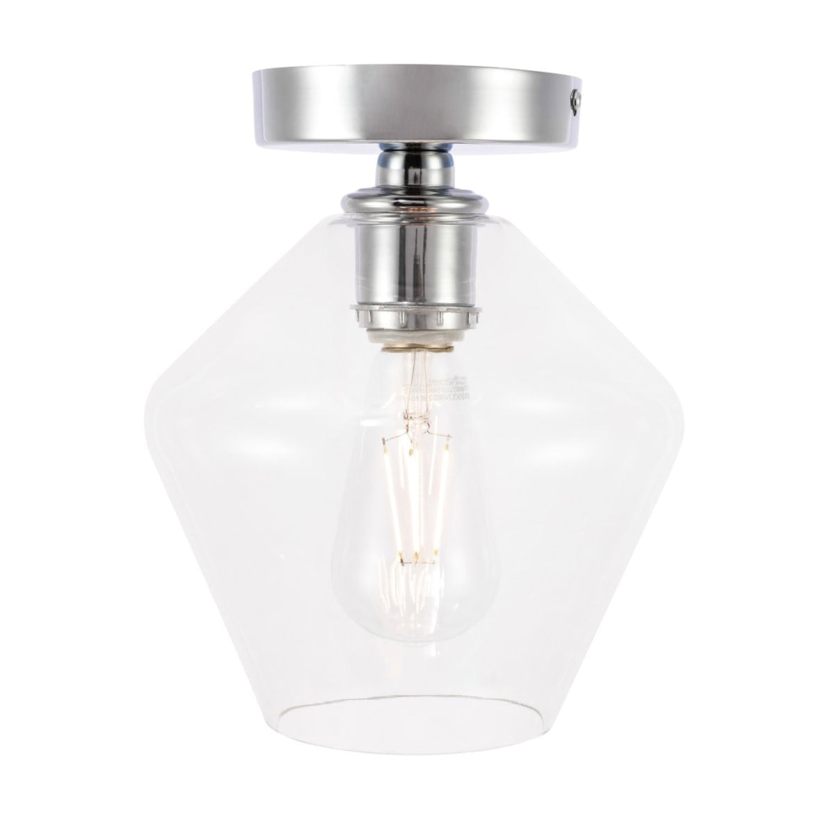 Living District Gene 1-Light Flush Mount Light Fixture, Chrome Metal & Clear Glass, Model LD2254C