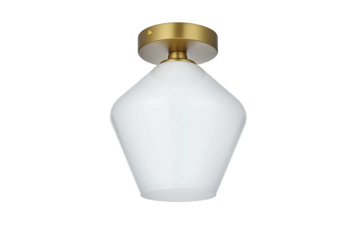 The Gene Collection of lights will be sure to have your guests admire your modern sense of style with the beautiful simplicity of its shape and form. This flush mount allows brilliant illumination to shine and radiate, allowing for your room to be center stage, and despite its minimalism, its design is far from boring--available in a brass, chrome, or black finish, with either a clear or frosted diamond glass shade. Enhance your bathroom, foyer, or hallways with the Gene Collection flush mount and live in sleek contemporary style (light bulbs not included).Features:- Material: Metal (Iron), Glass- Finish: Black, Frosted White- Room of Use: Hallway, living room, bedroom, bathroom, entry way- Canopy included: Yes- Shade included: Yes- Light Direction: Down- Bulbs included: No- Dimmable: Yes- Number of Tiers: 1- Dry location- Clean sleek lines and a minimalistic design that is a versatile fit for any aesthetic- Frosted white glass diamond shaped shade- Easily mounted on ceilingSpecifications:- Product Dimensions: 9.4H x 7.9W x 7.9D- Product Weight: 1.61 lbs- Product Dimensions: (Shade) 7.5H x 7.9W- Product Dimensions: (Canopy) 1H x 4.7W x 4.7D- Bulb Type: (Bulb Socket) E26- Number of Lights: 1- Voltage: 110-125V- Wattage: (Bulb) 40W- Wattage: (Maximum) 40W- Hardware: 11 of black and white wire