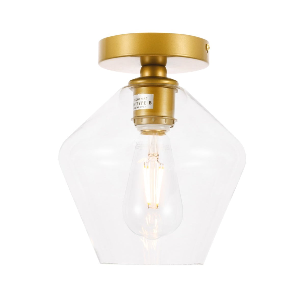 Living District Gene 1-Light Metal & Glass Flush Mount In Brass/Clear