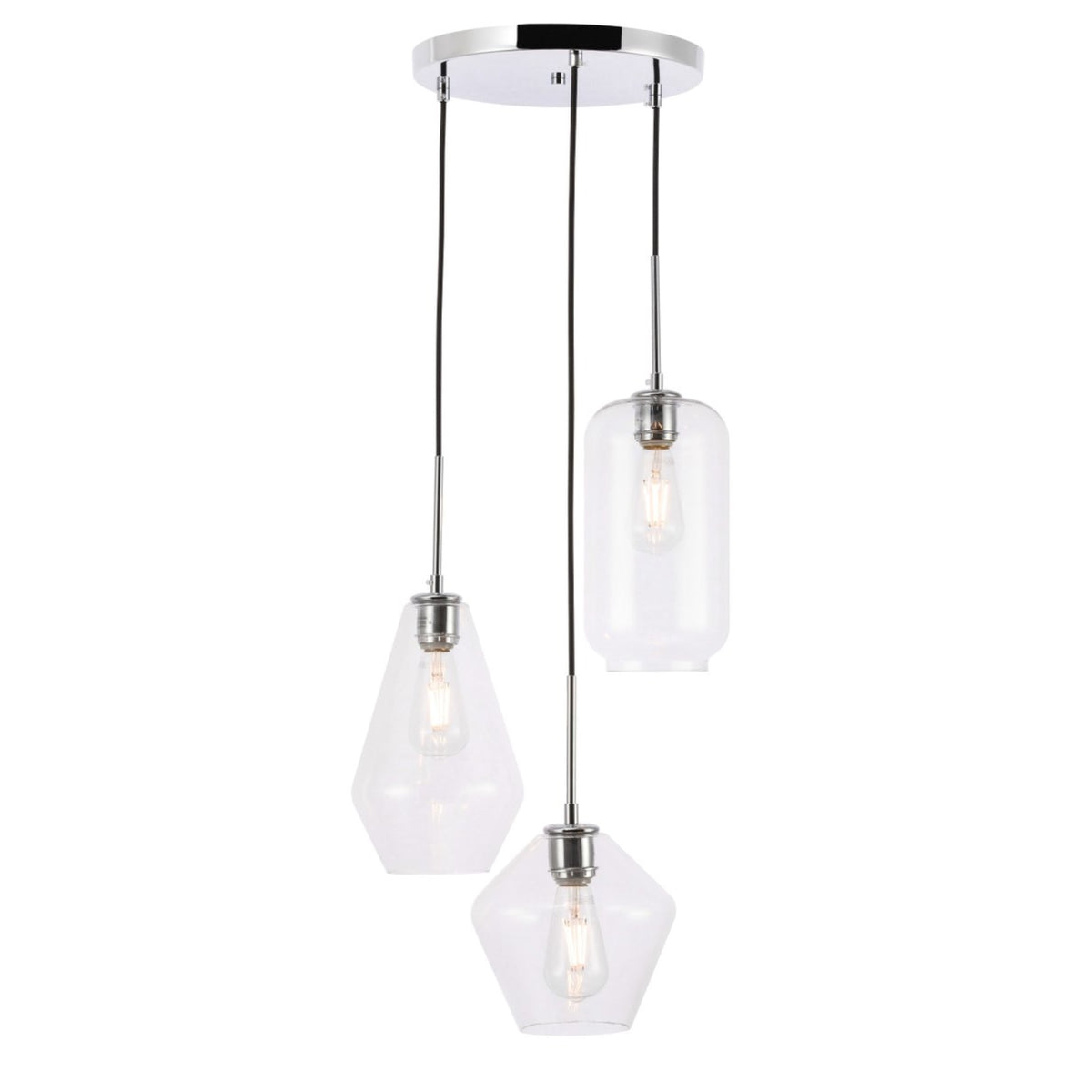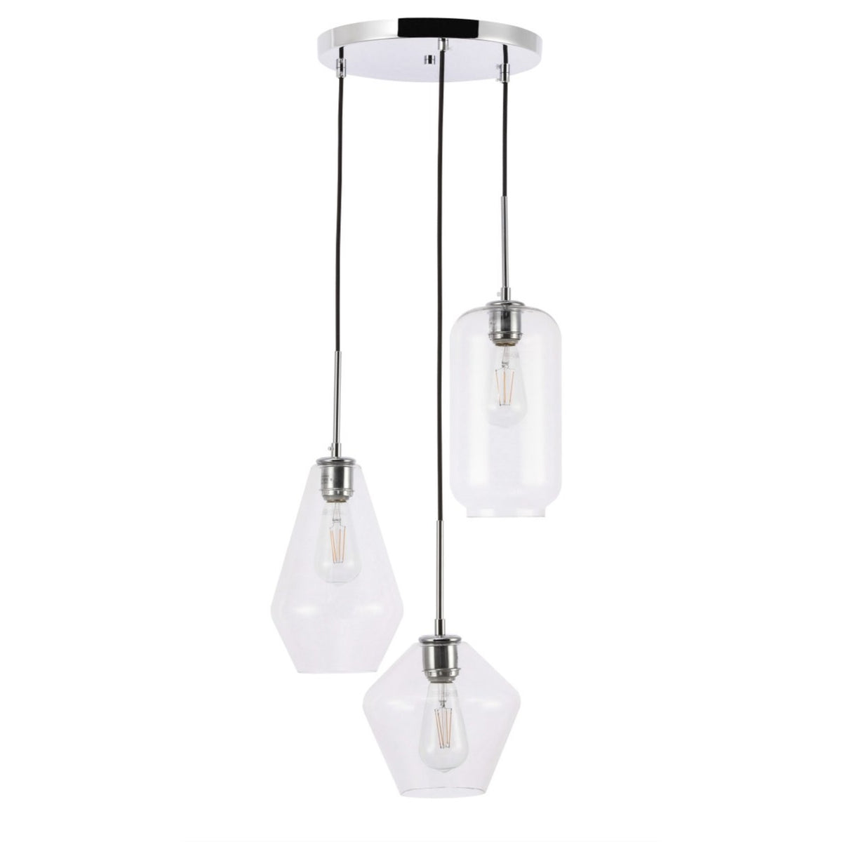 Living District Gene 3 Lt Chrome And Clear Glass Pendant